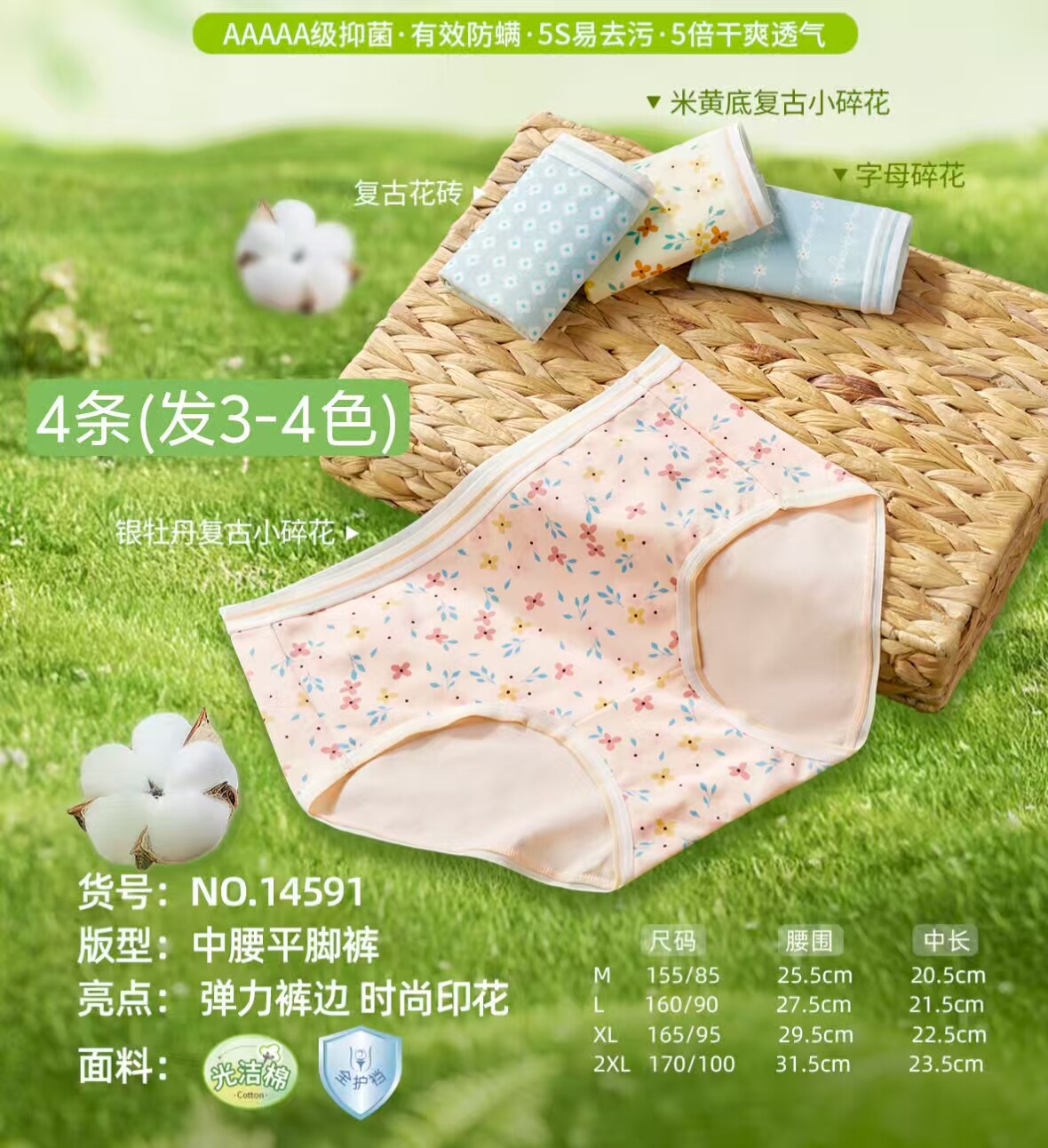 四条组合纯棉印花简约学生内裤