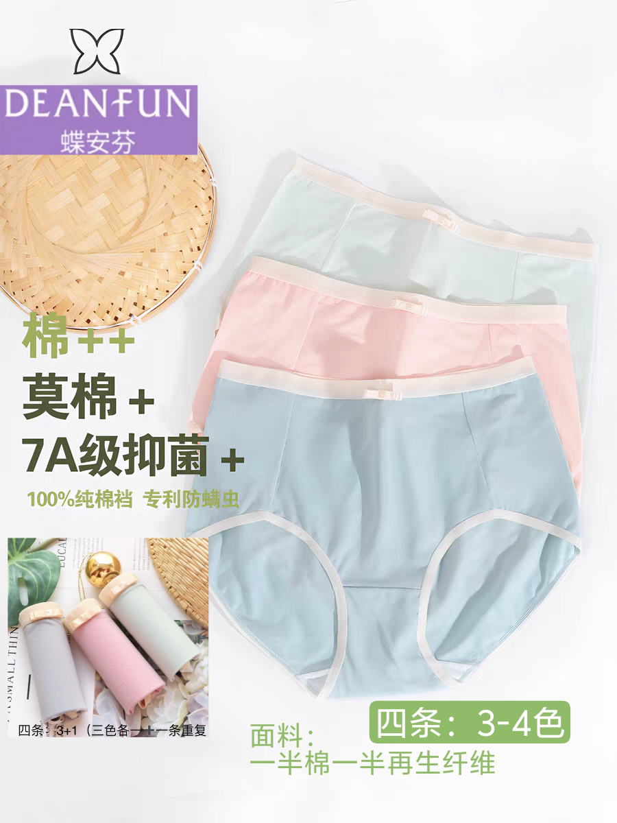 蝶安芬女内裤四条组合清纯棉质印花简约舒适可爱学生小平角抑菌裆