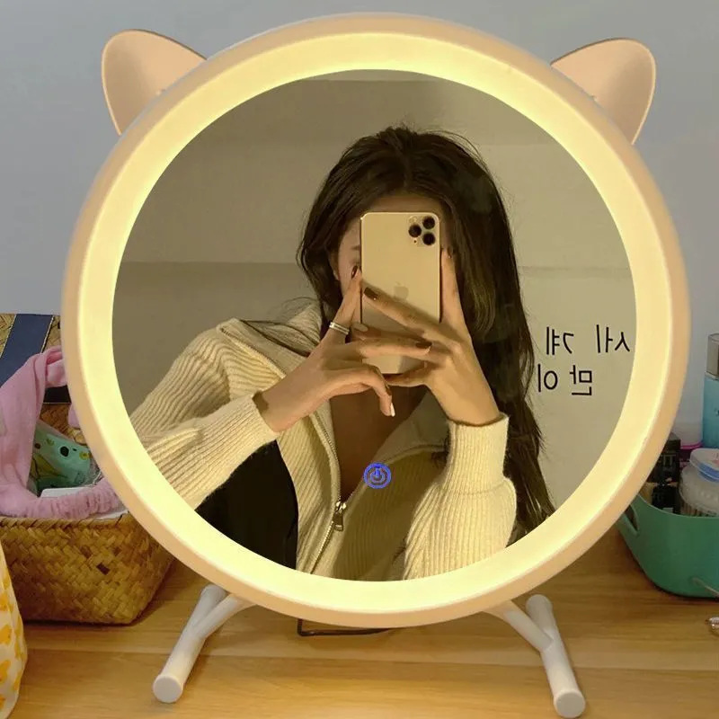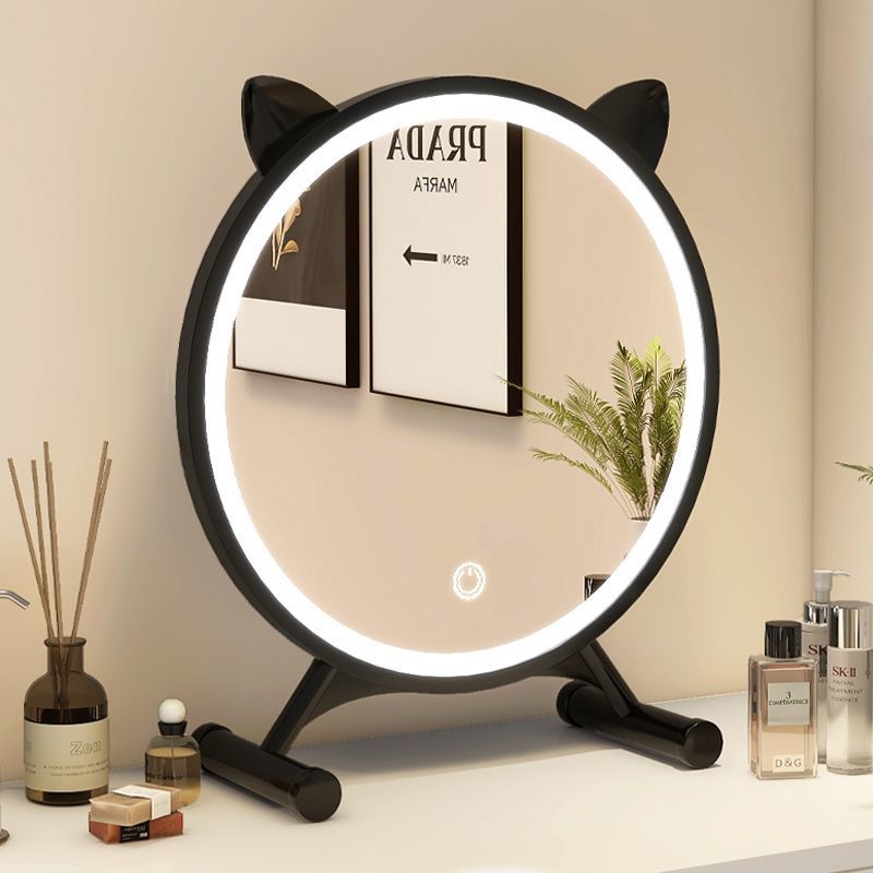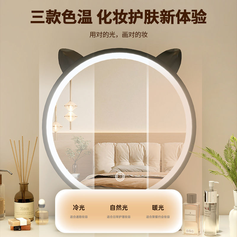 大号桌面化妆镜带led灯学生宿舍台式ins风梳妆台镜子卧室补光圆镜