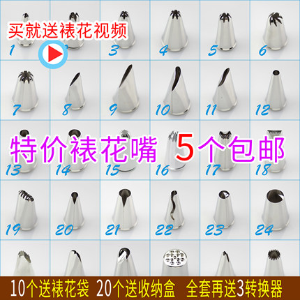 不锈钢裱花嘴 套装 泡芙玫瑰曲奇 玫瑰花康乃馨 大中小号烘焙工具