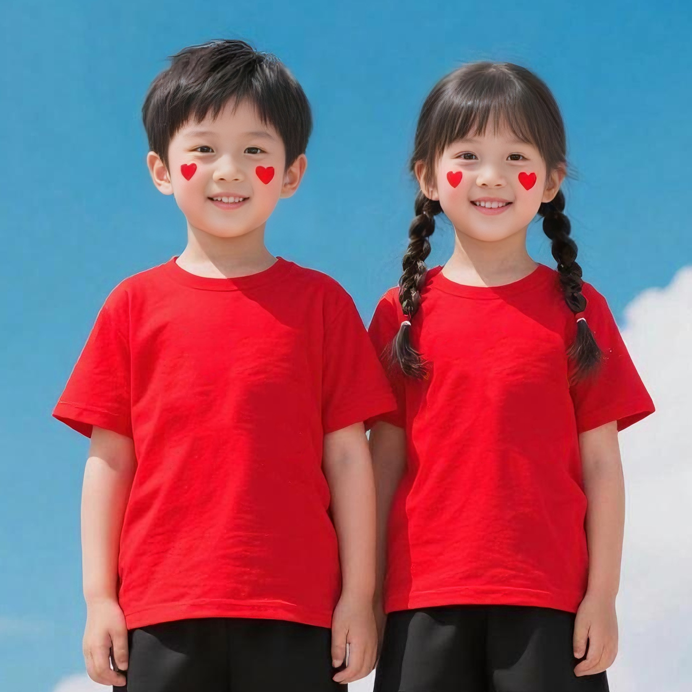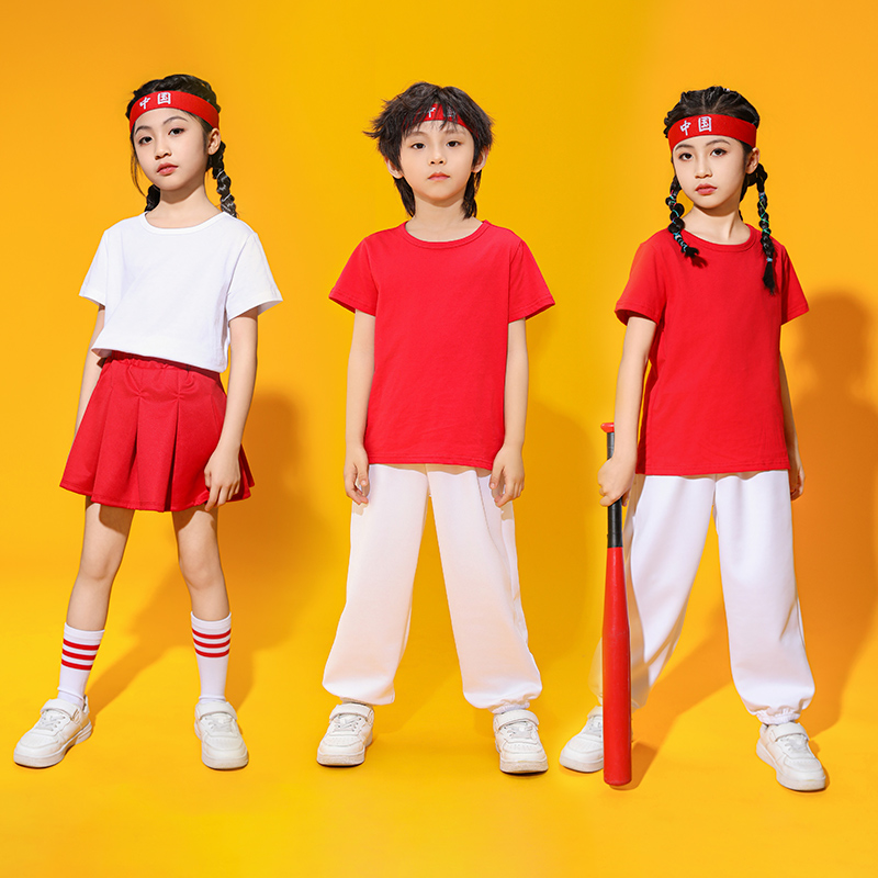 纯棉儿童红色t恤短袖 女童男童小学生幼儿园亲子装运动会班服定制
