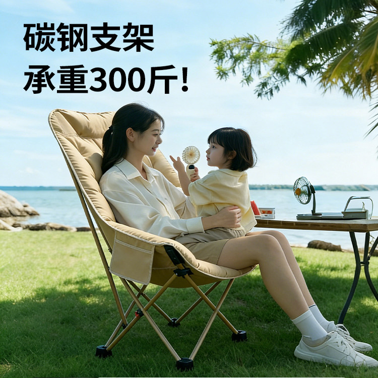 户外折叠椅子躺椅露营月亮椅