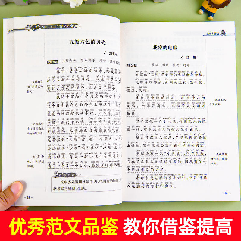 小学生作文带拼音小学一年级二年级三四五六年级作文书大全老师小学生推荐200-600字作文优秀分类满分作文素材三至四至六年级范文