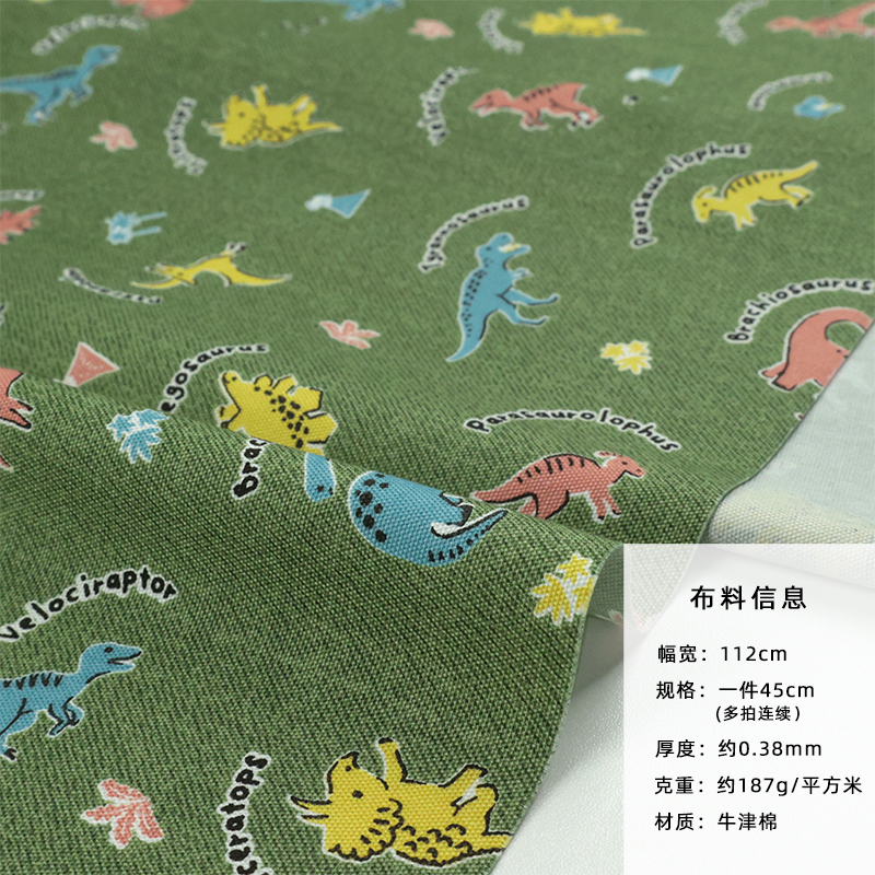 日本进口牛津棉布料纯棉细帆布手工布艺抱枕上衣服装面料恐龙草地