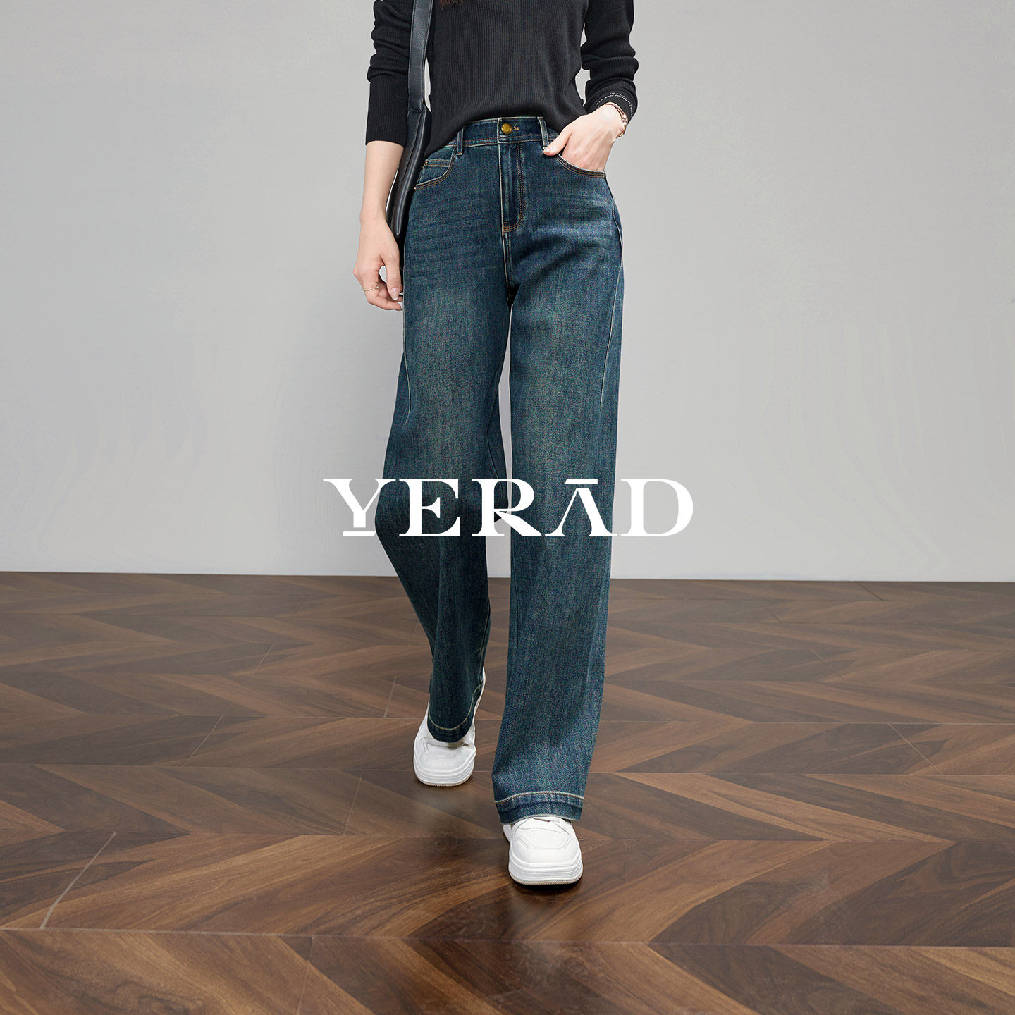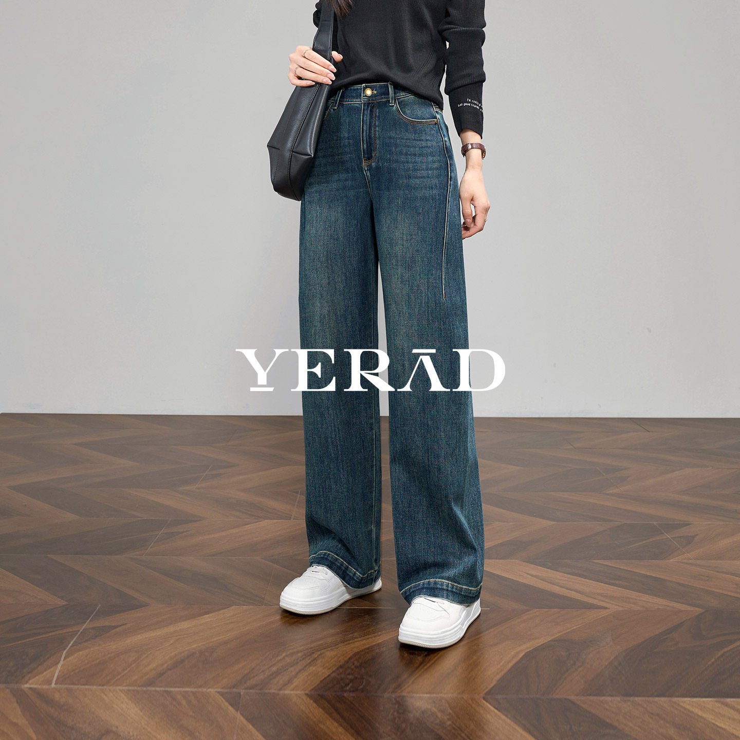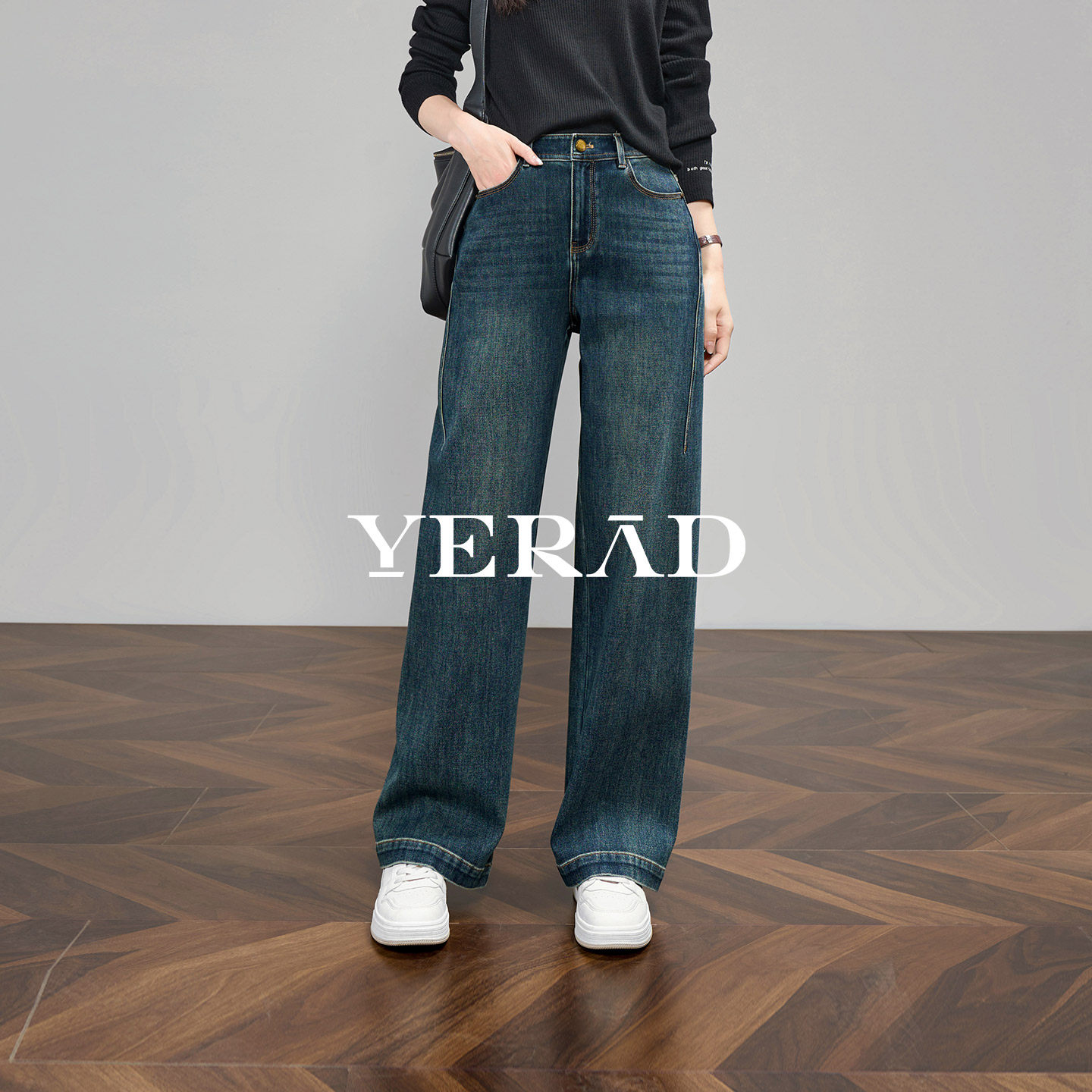 【弹力自由裤】娅丽达阔腿牛仔裤女2025新款秋宽松遮肉垂顺直筒裤