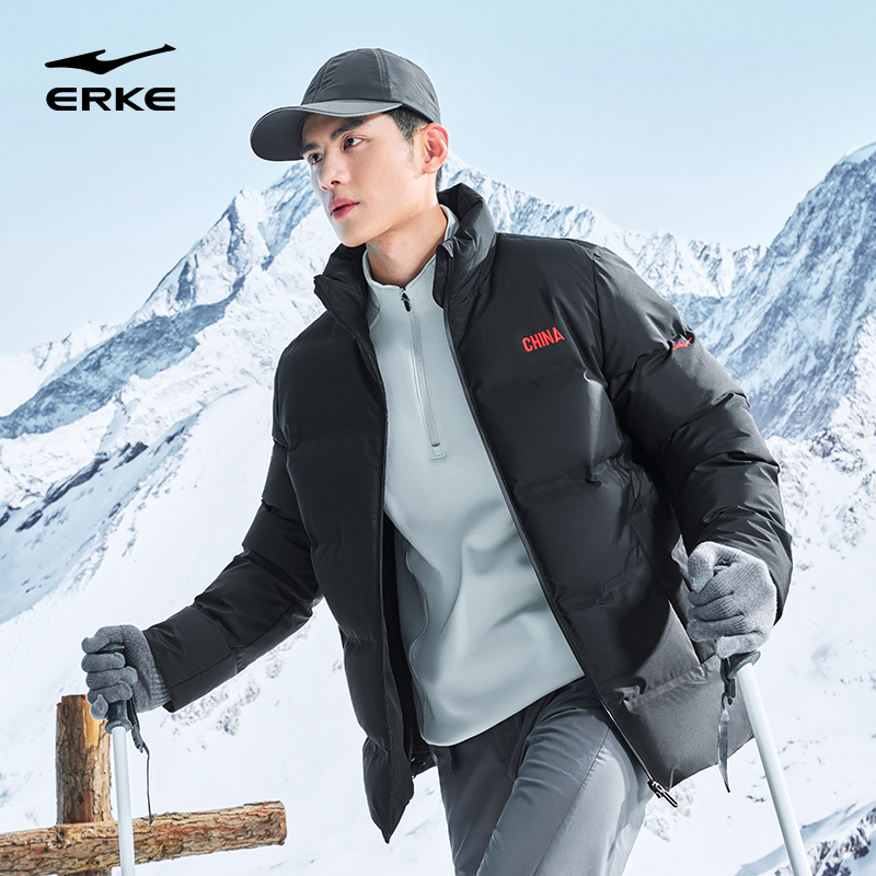 鸿星尔克中国羽绒服男2025冬季新款男士立领保暖夹克运动羽绒外套