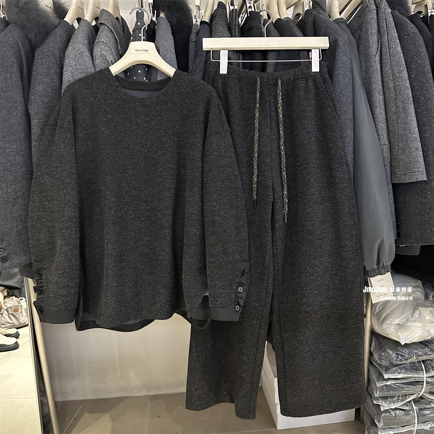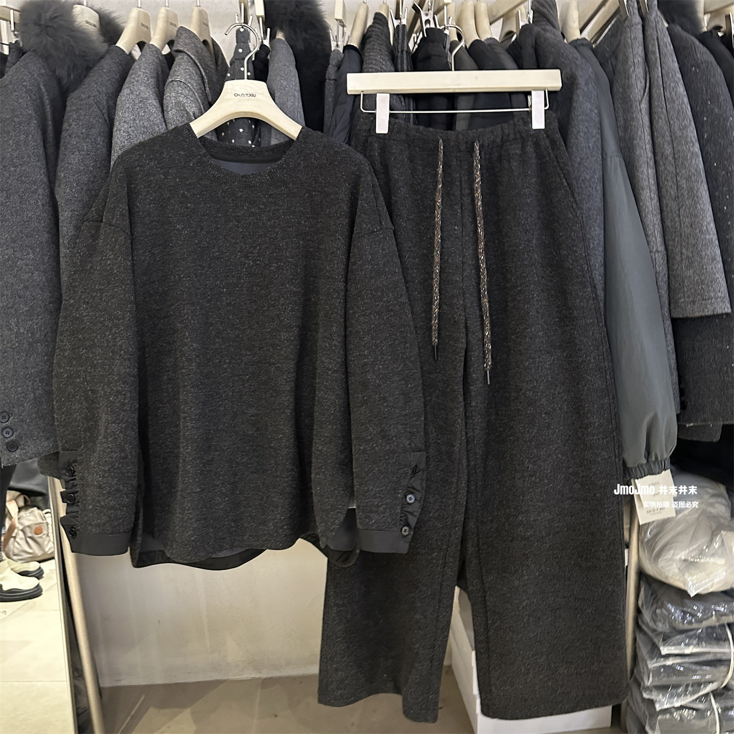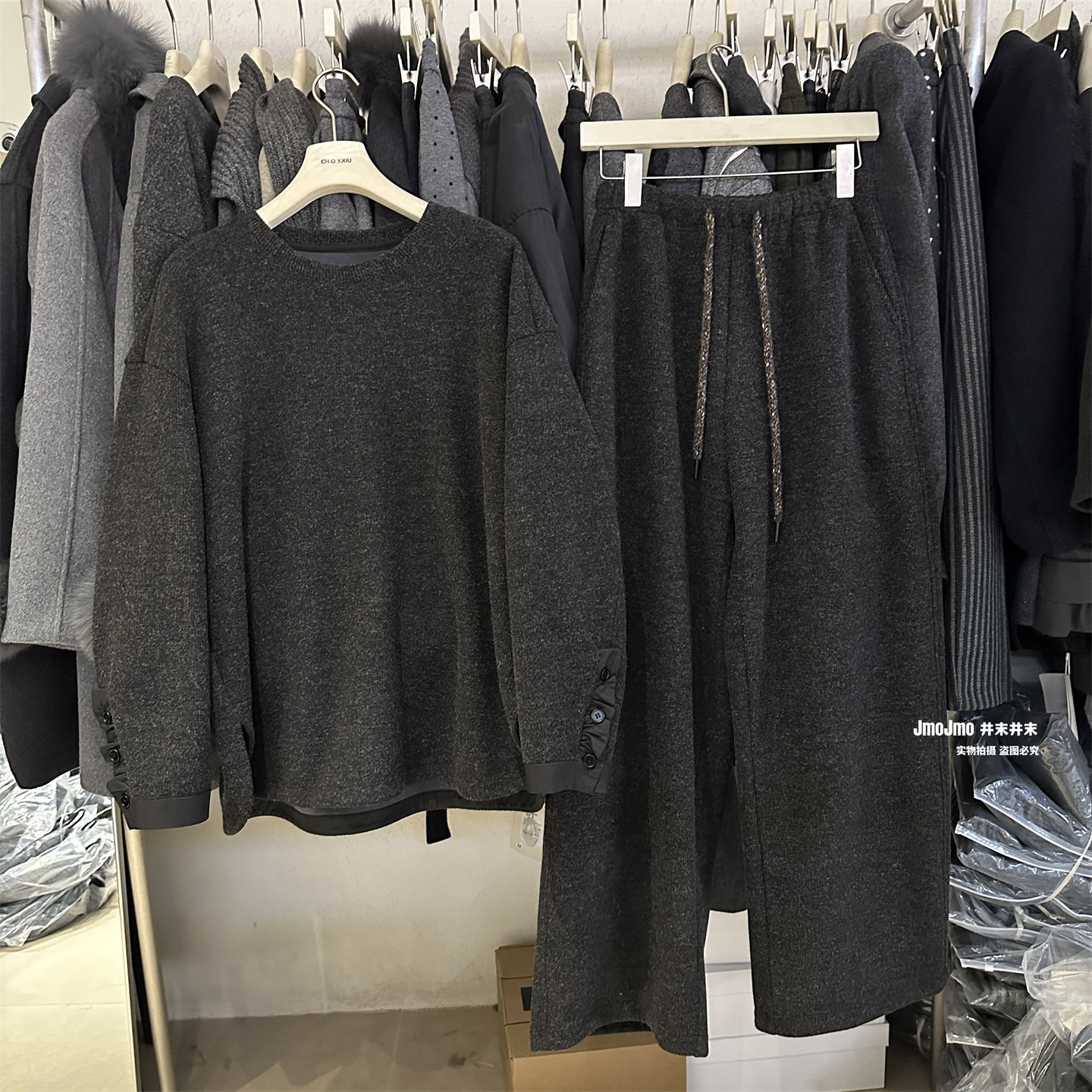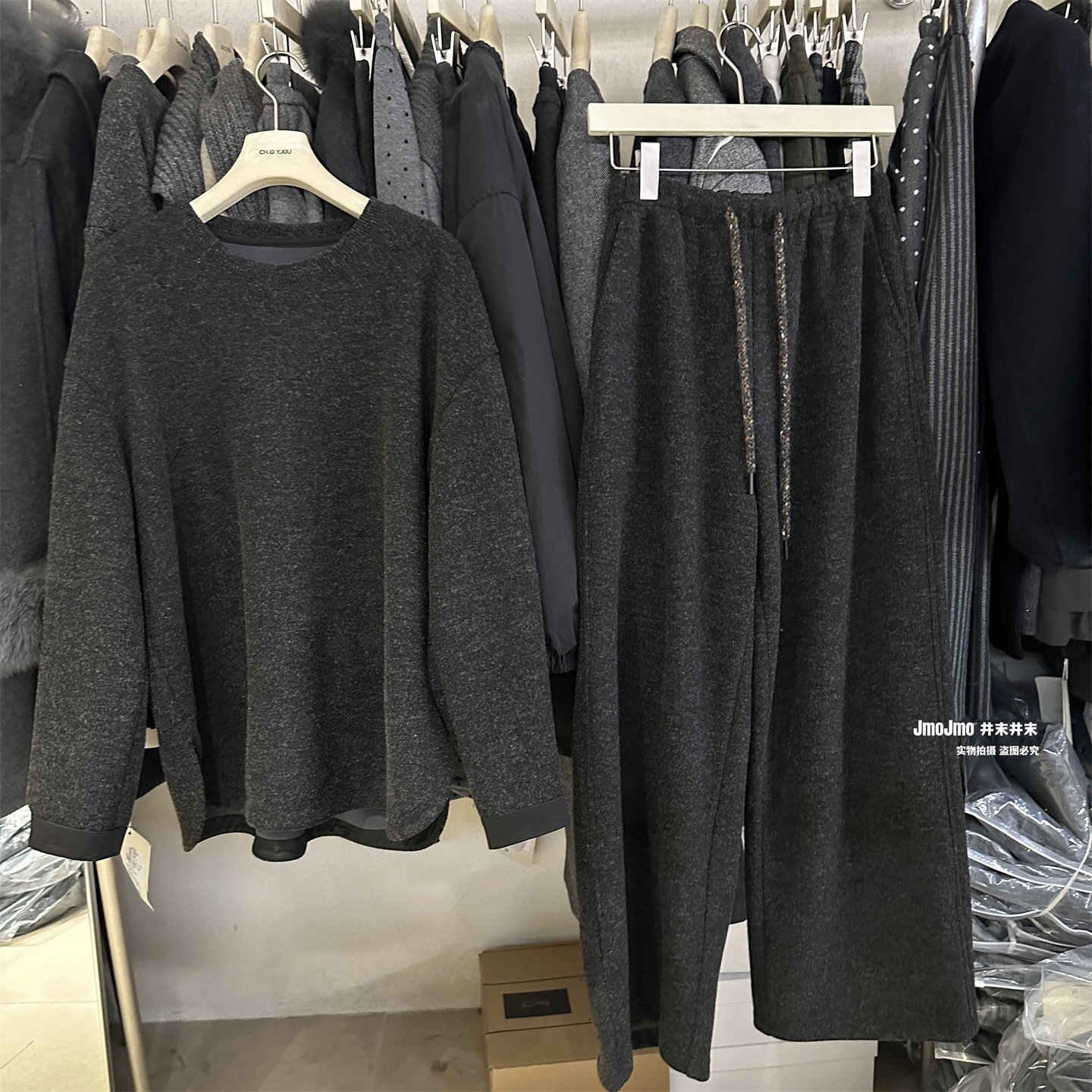 加绒加厚袖口木耳边上衣抽绳阔腿裤套装冬保暖显瘦休闲卫衣两件套