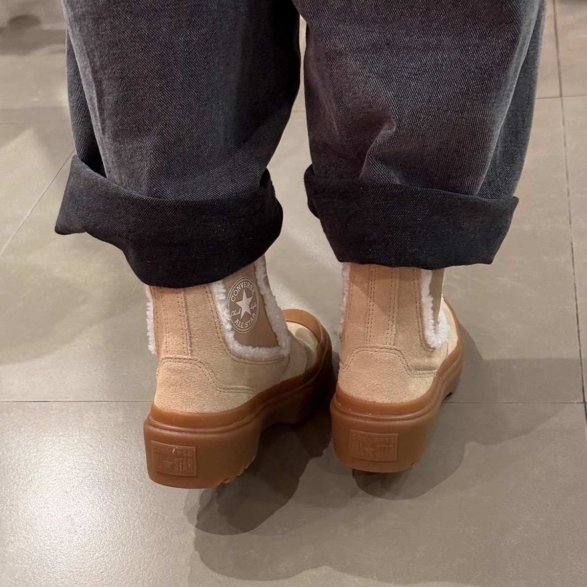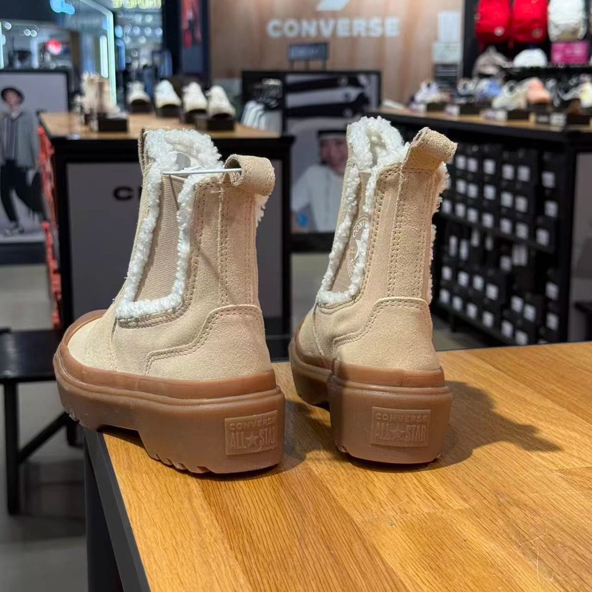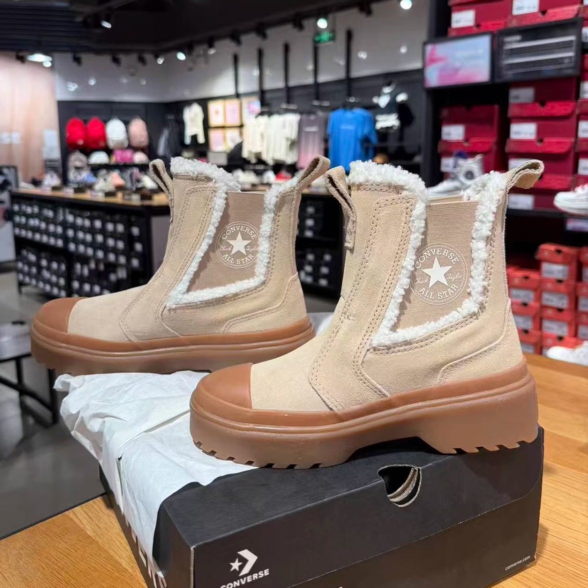 正品CONVERSE匡威大童SEASONAL切尔西加绒保暖短靴运动鞋A09257C