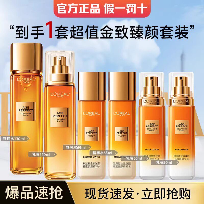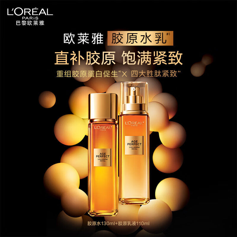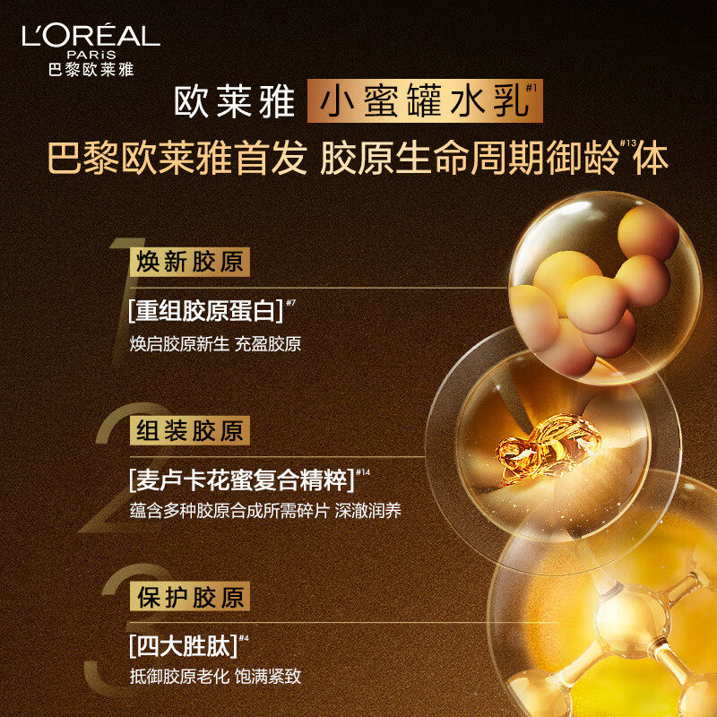 欧莱雅小蜜罐花蜜胶原水乳套装礼盒礼物护肤品紧致抗老抗皱礼盒