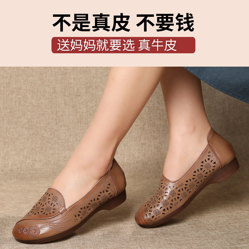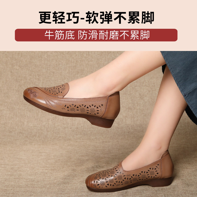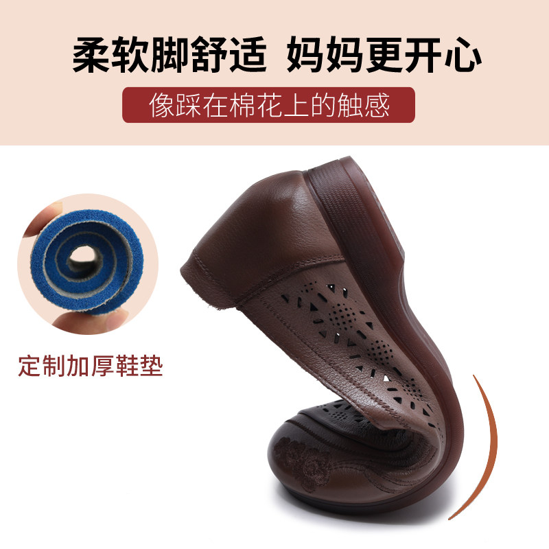 中老年妈妈鞋凉鞋真皮软底舒适皮鞋镂空洞洞鞋夏季新款牛筋底女鞋