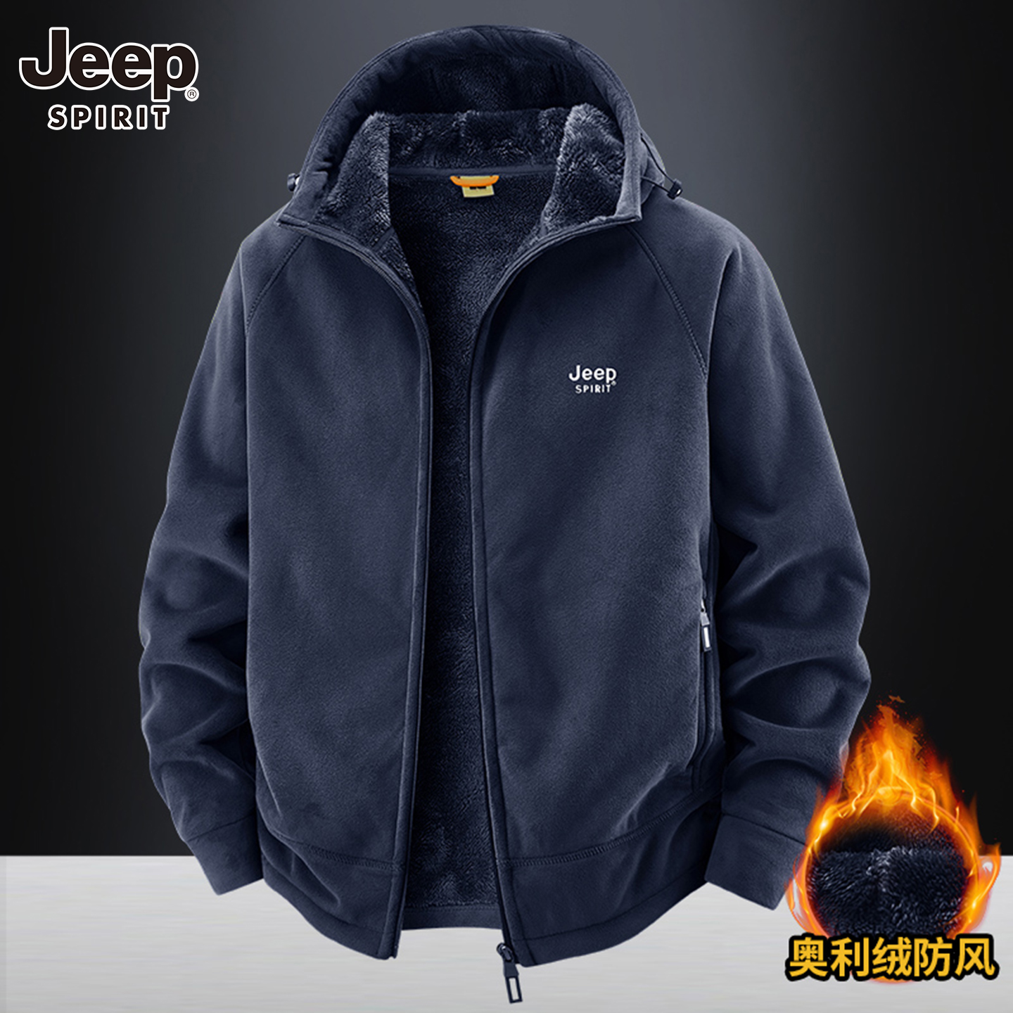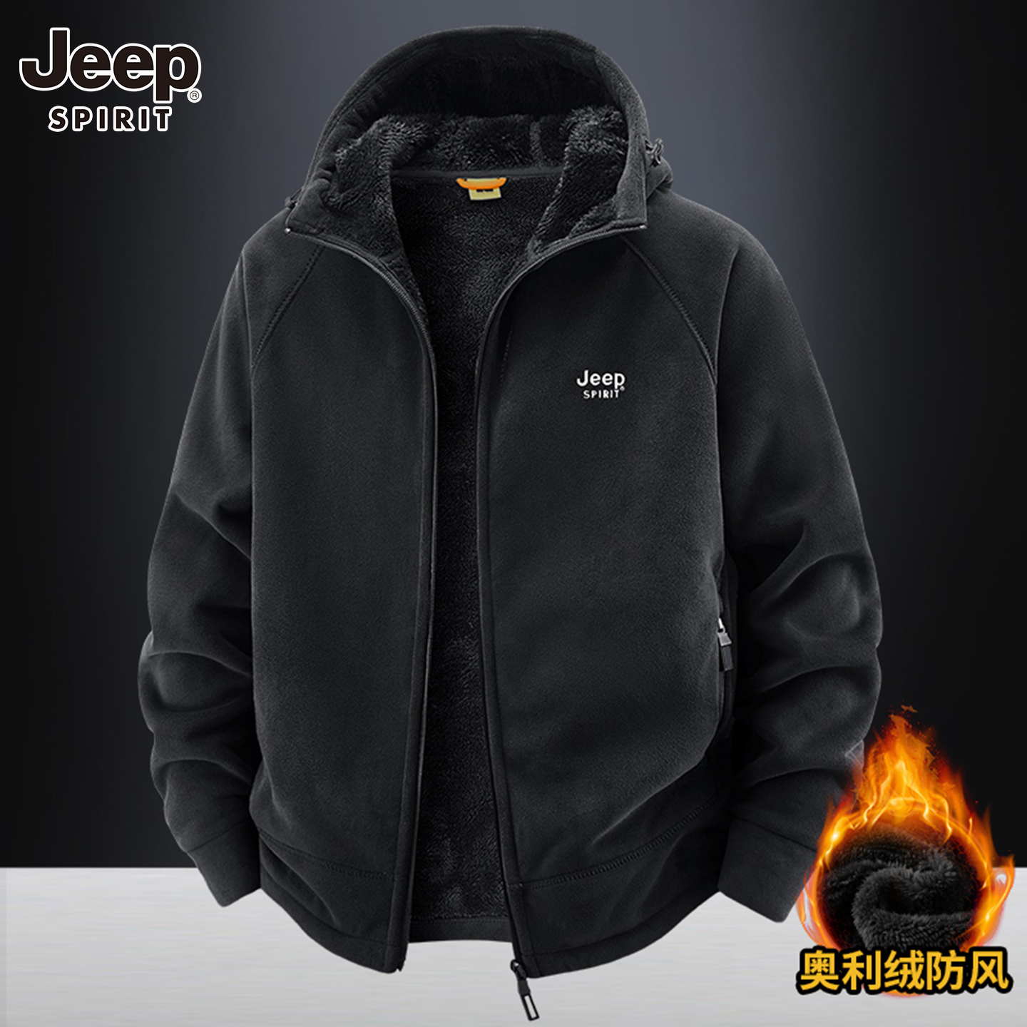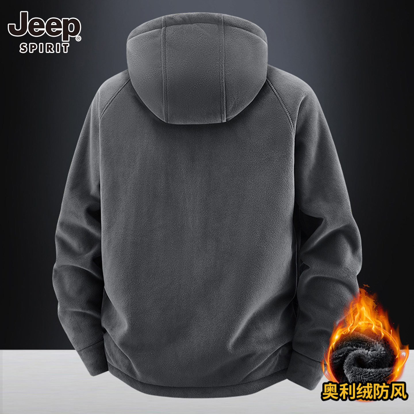 JEEP吉普奥粒绒连帽外套男2025秋冬新款加绒加厚男士户外运动夹克