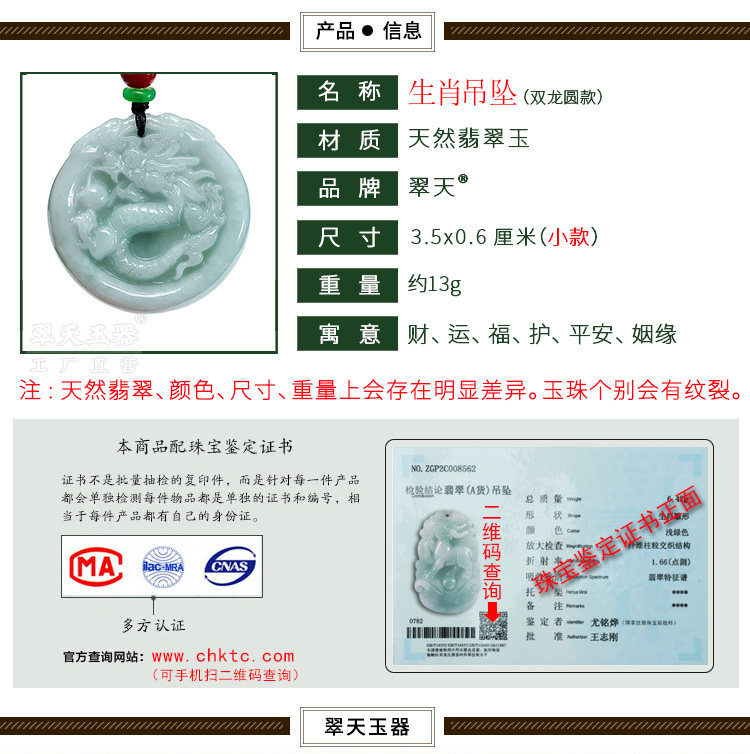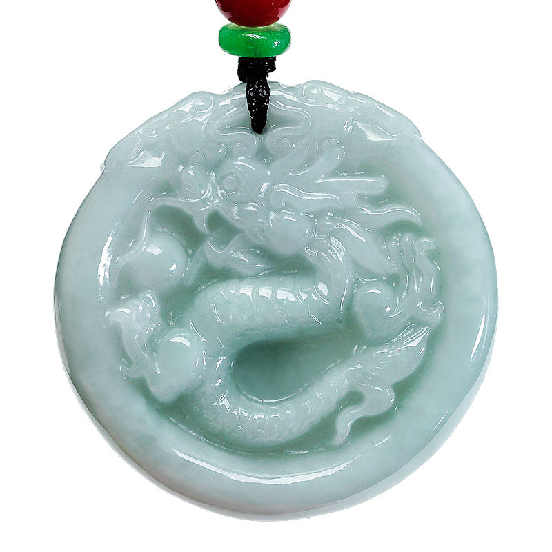 翡翠生肖龙天然翡翠小款生肖属相龙项链本命玉佩圆牌玉石挂件男女