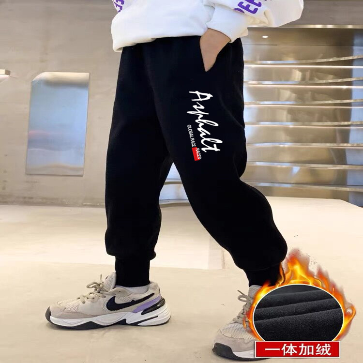 男童加绒裤子一体绒冬季加厚长裤中大童胖孩2025新款儿童运动卫裤