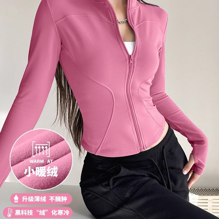薄绒立领长袖瑜伽外套女保暖紧身专业跑步普拉提训练运动健身服
