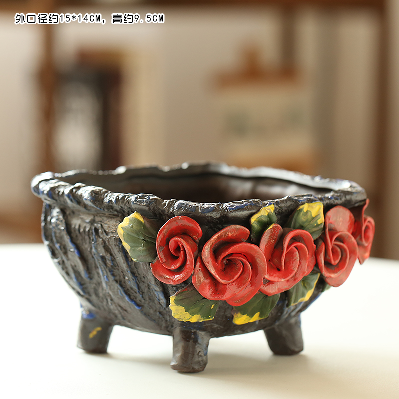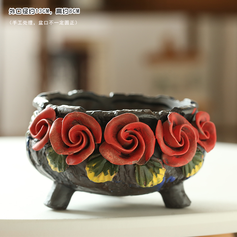 句号多肉花盆韩式肉肉陶瓷彩绘手工捏花带脚透气粗陶拼盘小老桩