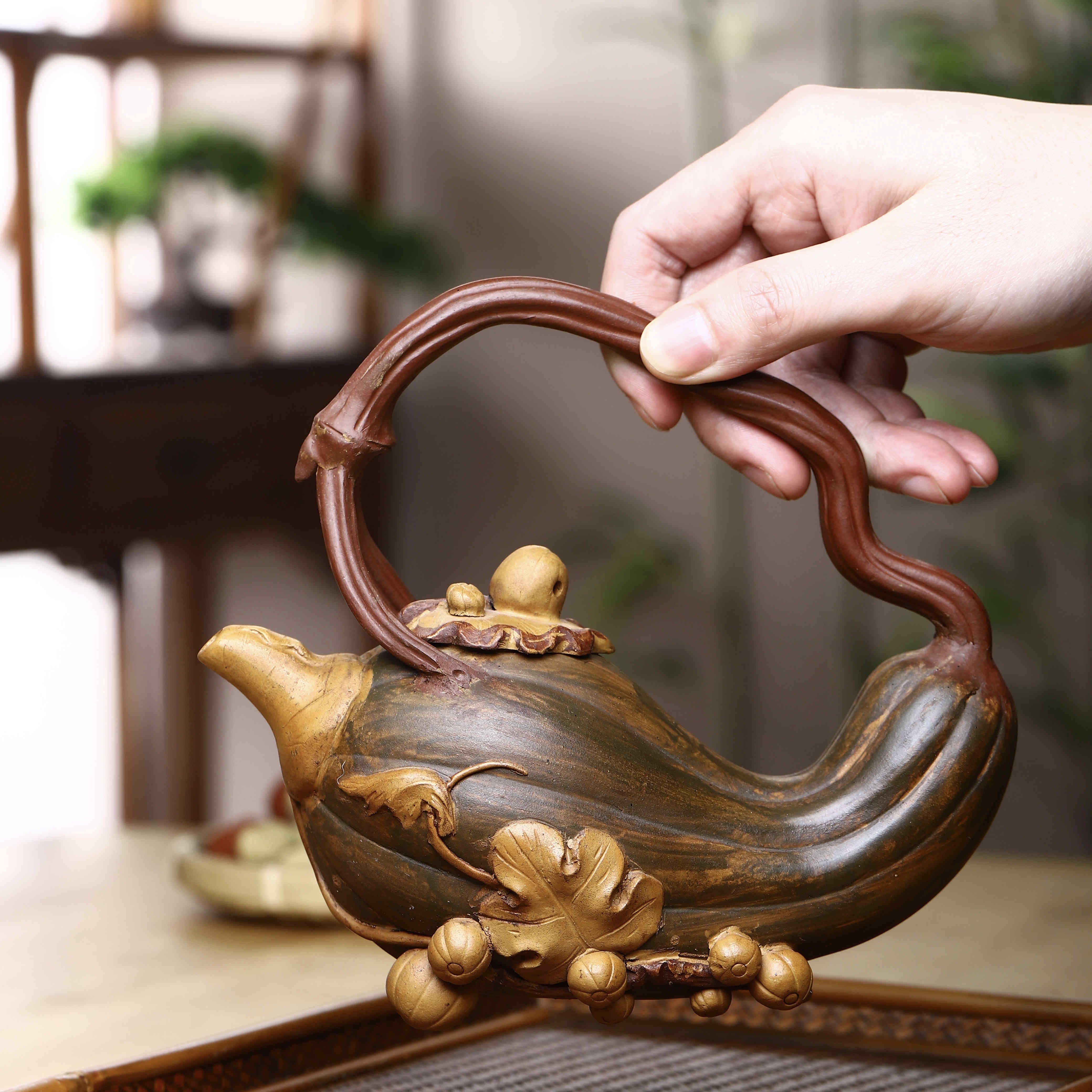正品宜兴原矿紫砂壶名家纯手工大容量泡茶壶南瓜提梁老紫砂壶茶具