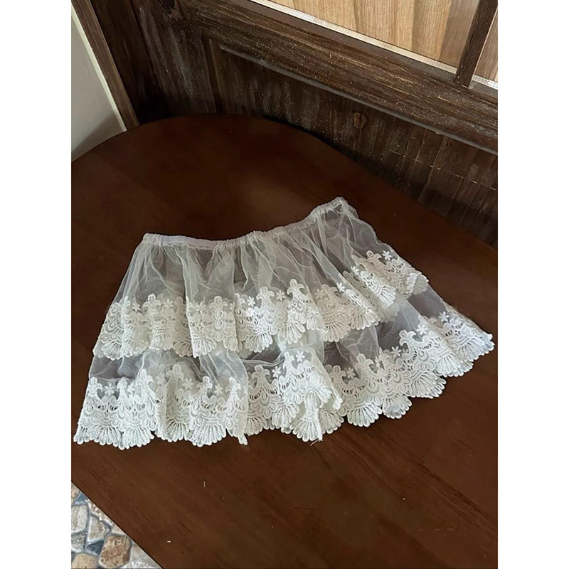 欧洲站2025早春新款欧货松紧腰裙帘叠穿层次感半身短裙时尚蕾丝潮
