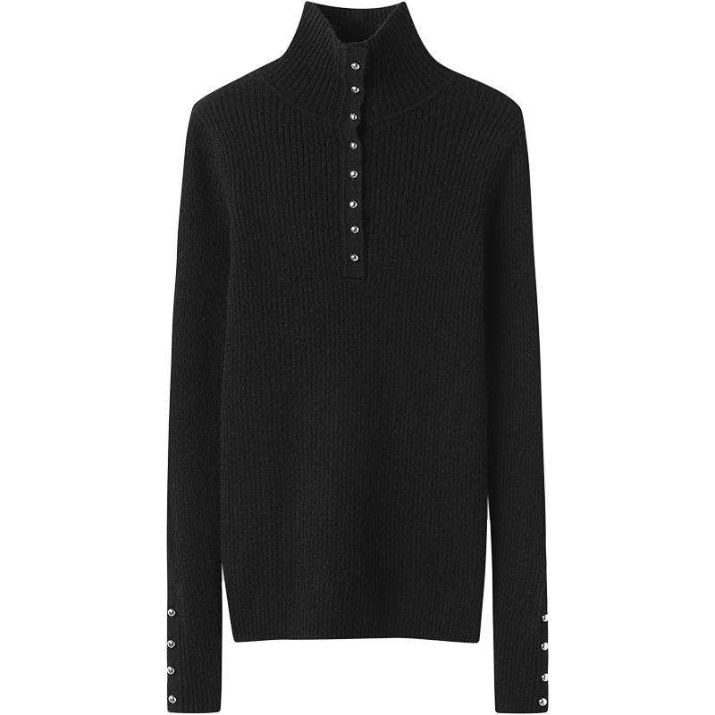 稳稳的时髦感!金扣高领弹力修身羊绒衫女纯羊绒毛衣针织打底衫冬