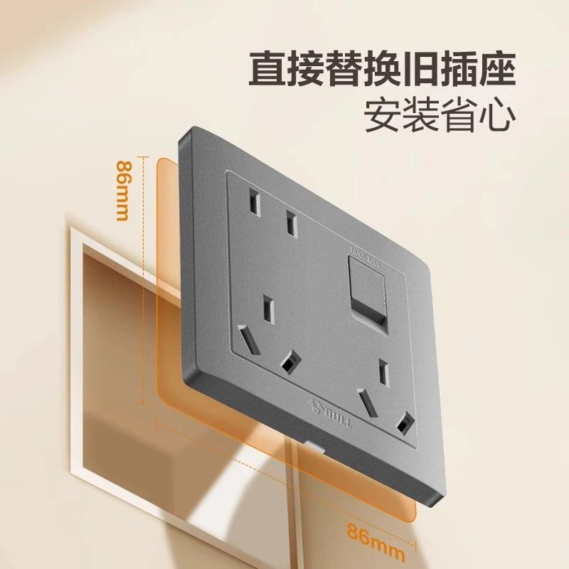 公牛一开八孔插座带开关86型