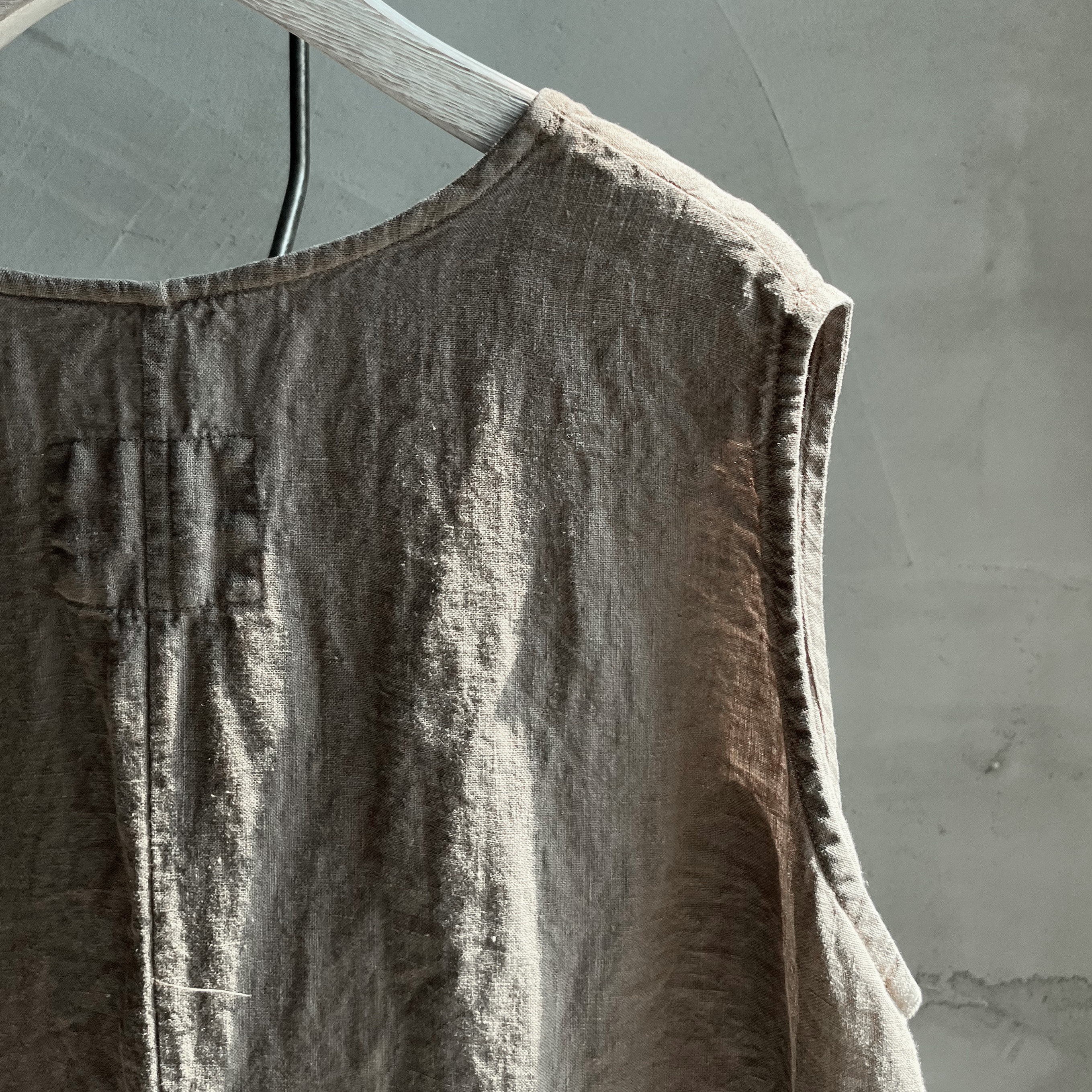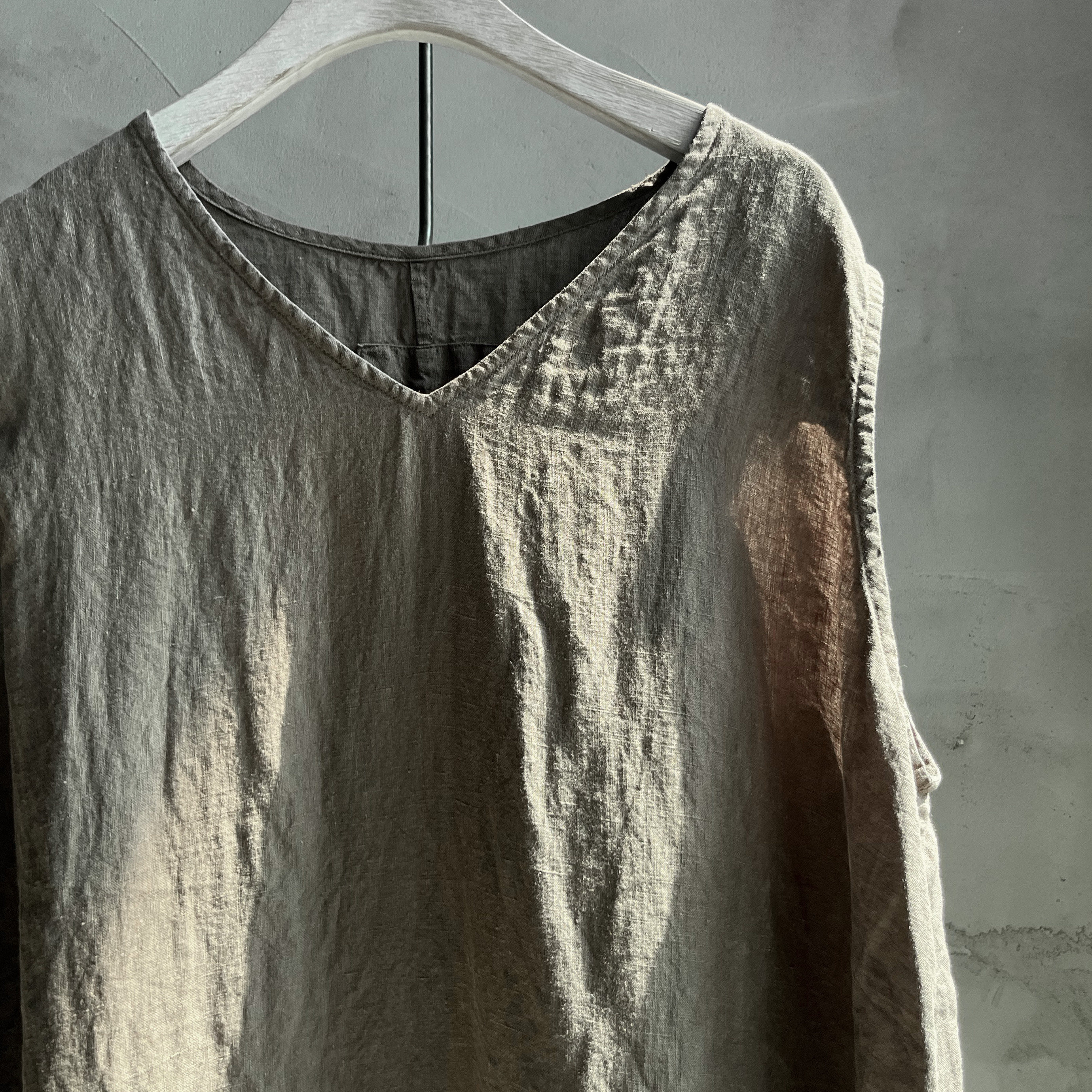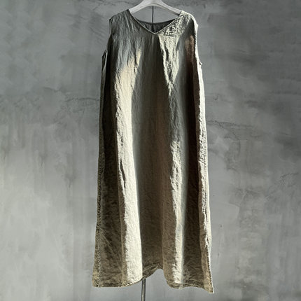 沉香布衣草堂自制 v领亚麻2025夏长衣 长背心裙复古外穿C25u07124