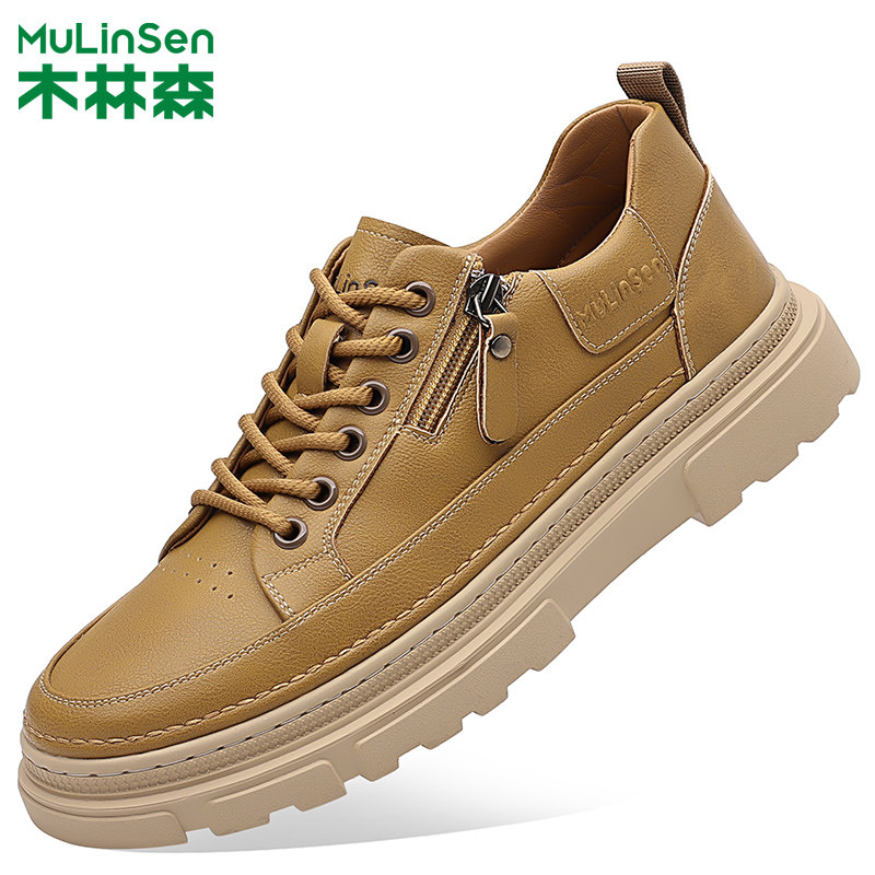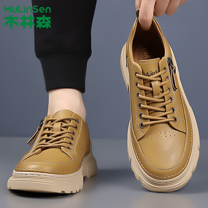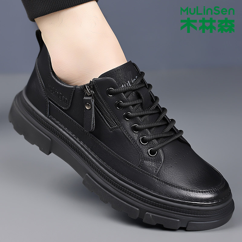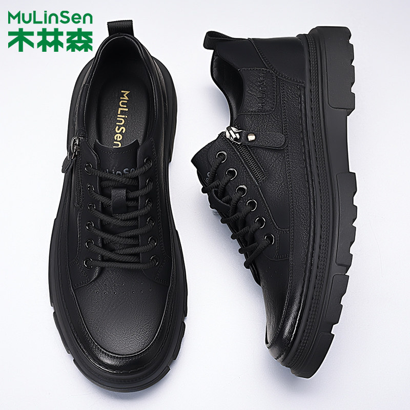 木林森男鞋2025冬季新款真皮英伦百搭商务休闲皮鞋男士马丁工装鞋