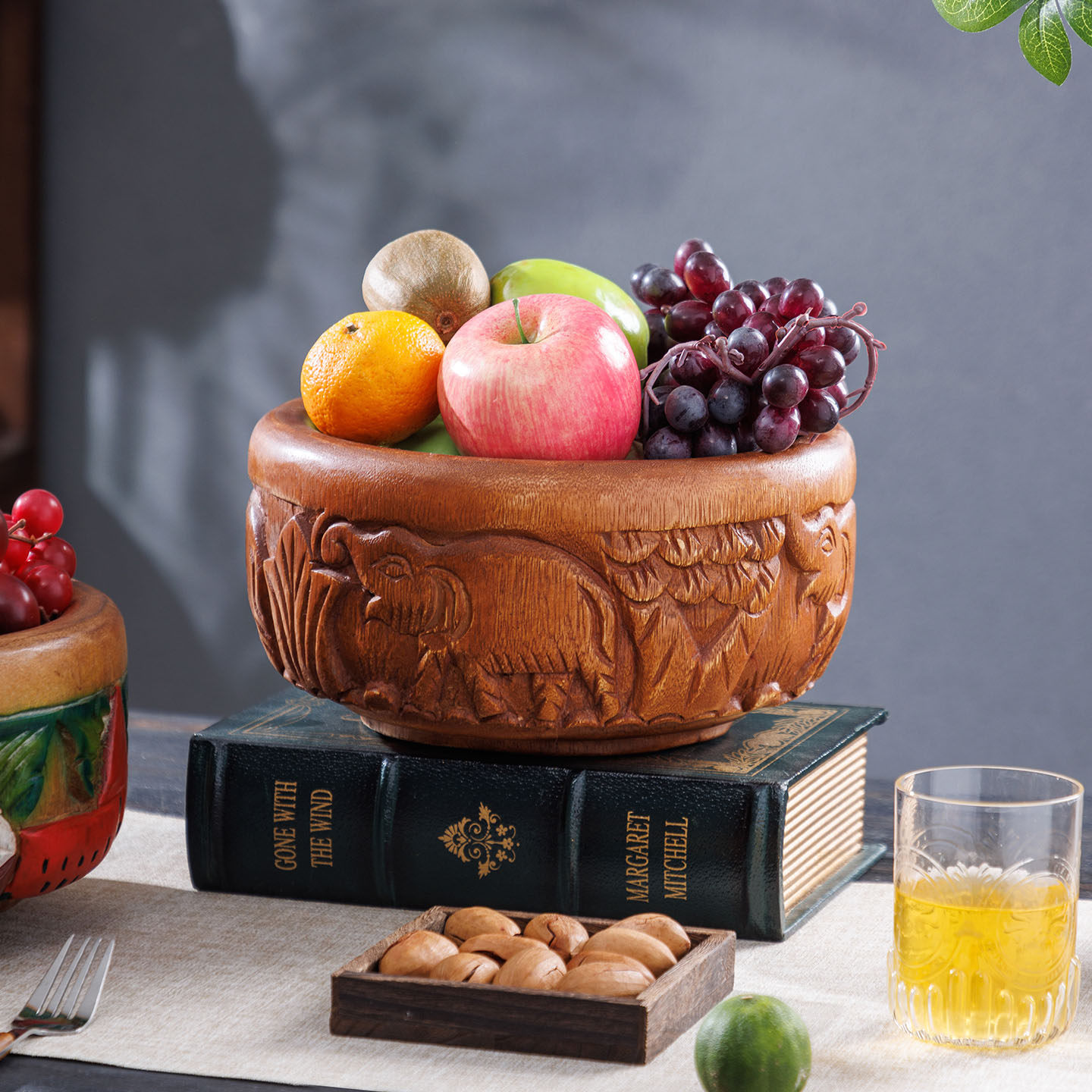 东南亚风整实木雕刻大象过年木碗泰式干果零食盒收纳水果盘揉面盆