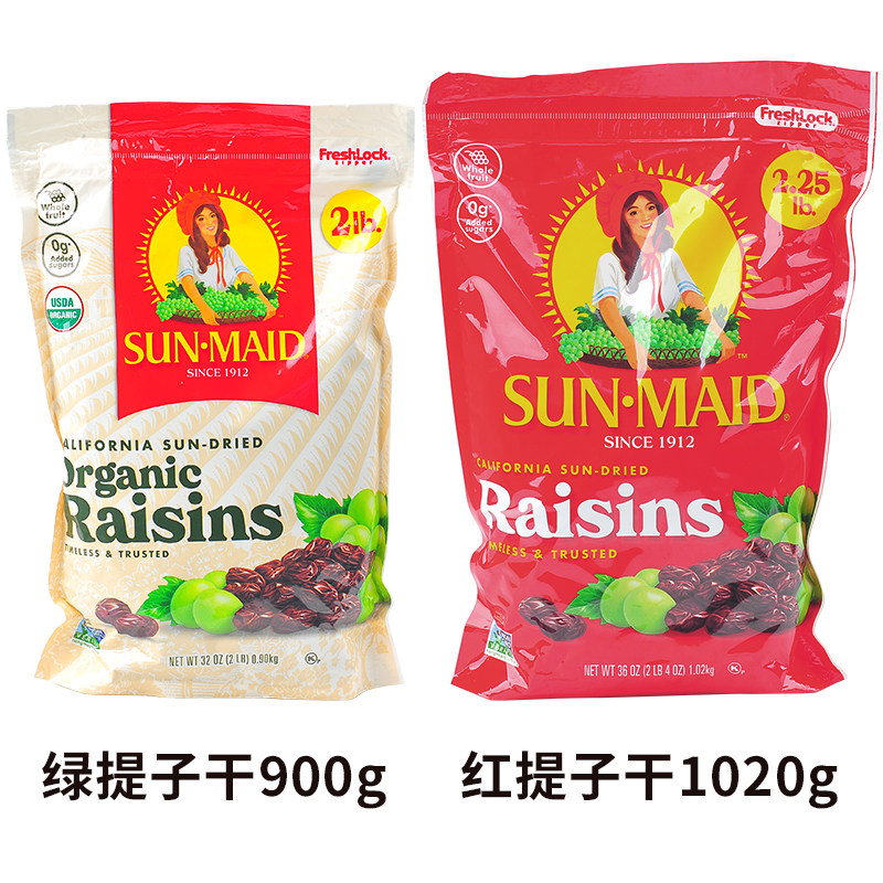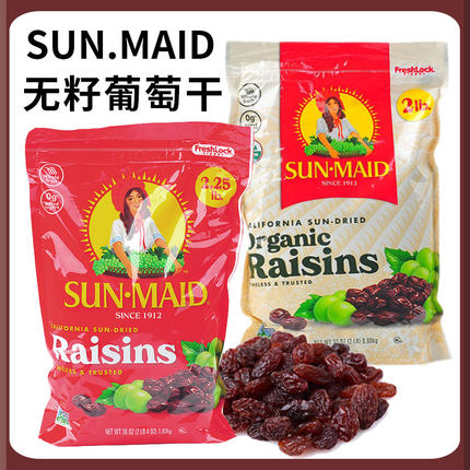 美国加州SUN·MAID阳光少女无籽葡萄干无蔗糖零食无核提子干水果