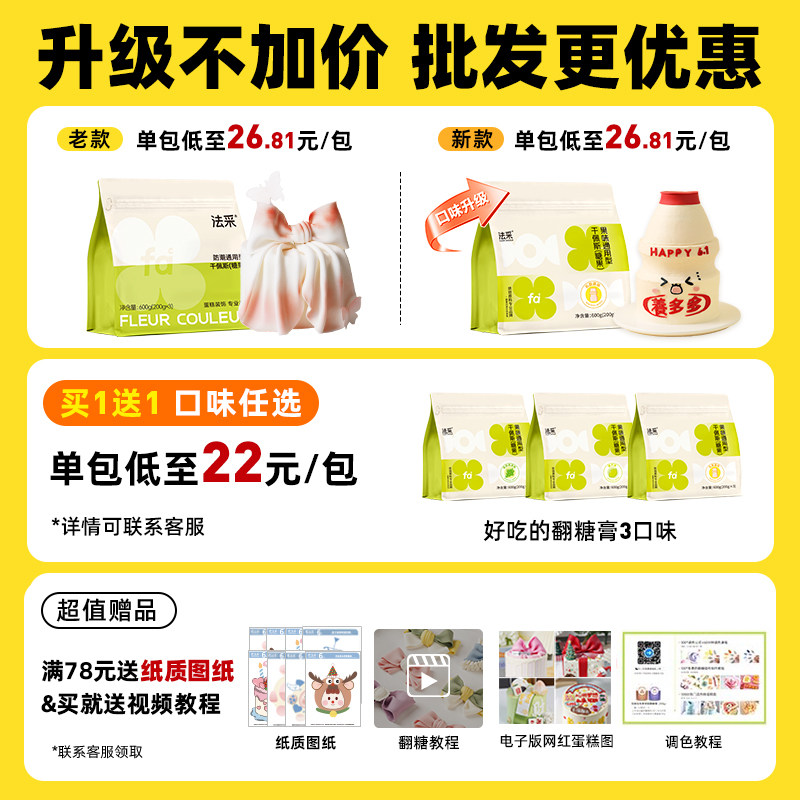 FC法采翻糖膏防潮干佩斯蝴蝶结蛋糕烘焙装饰好吃乳酸菌青提茉莉食