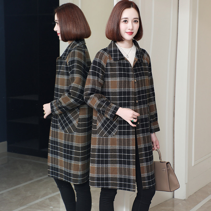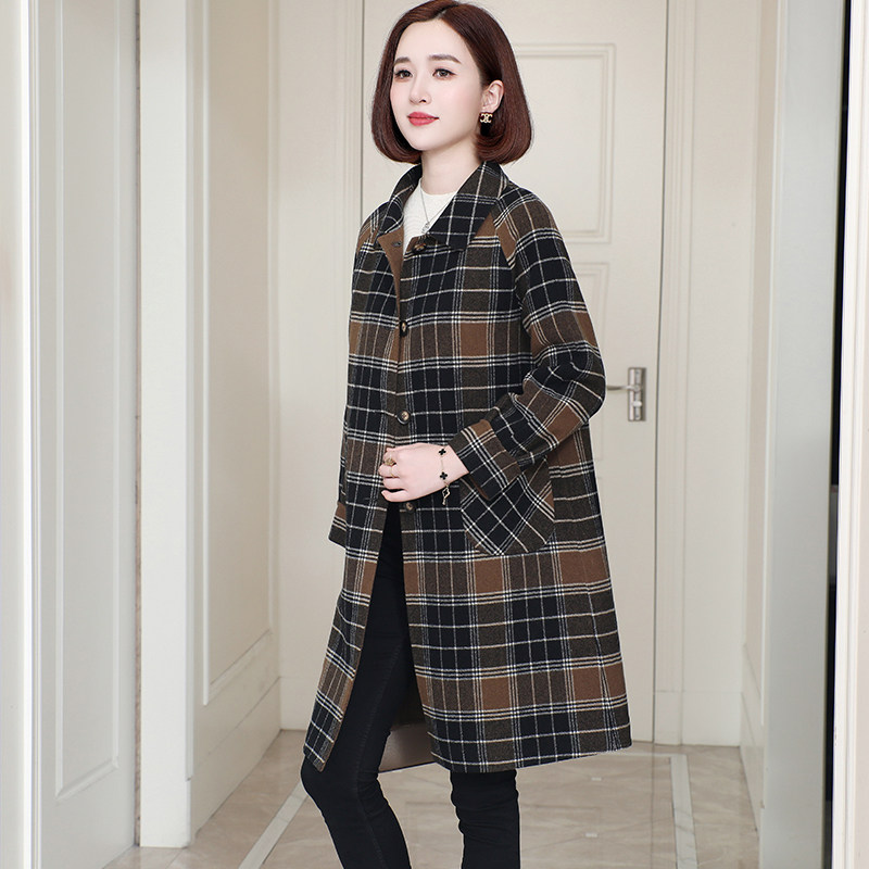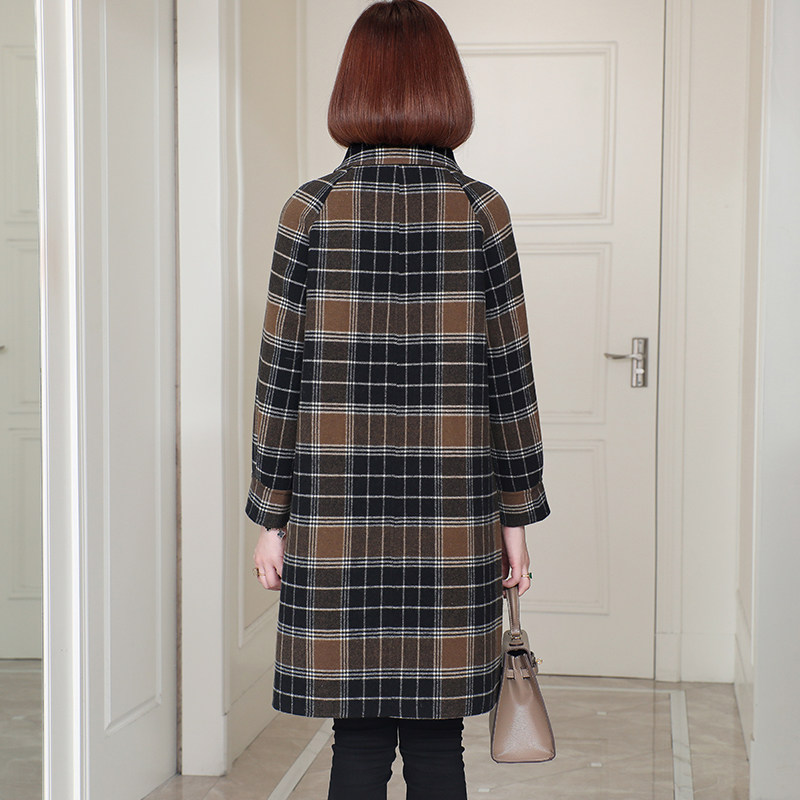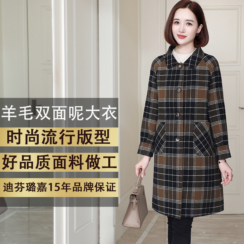 格子羊毛大衣女2023新款秋冬双面呢中长款休闲毛呢子外套韩版妈妈