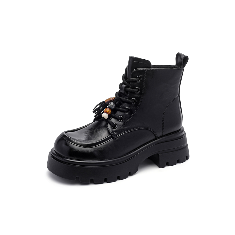 卓诗尼2025新款时尚百搭厚底增高马丁靴女英伦风圆头粗跟短靴女