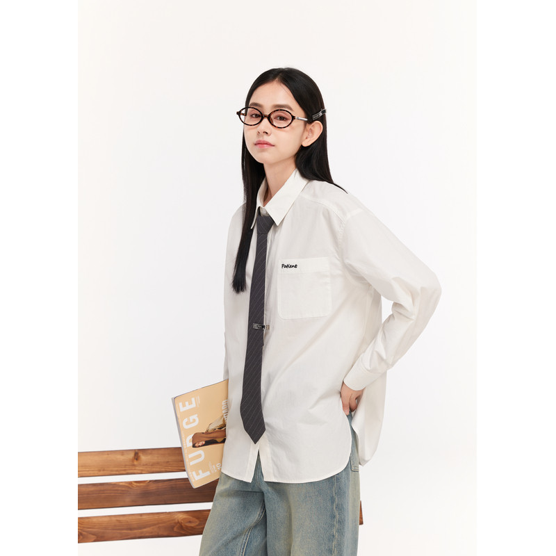 紫涵纯色简约长袖衬衫女秋季新款宽松时尚休闲百搭高级感翻领上衣