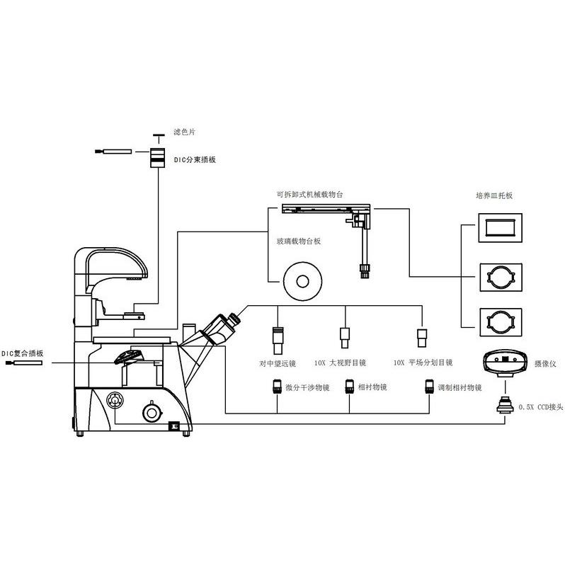 HXDS-3DIC型透射式三目倒置明场微分干涉相衬生物显微镜照明
