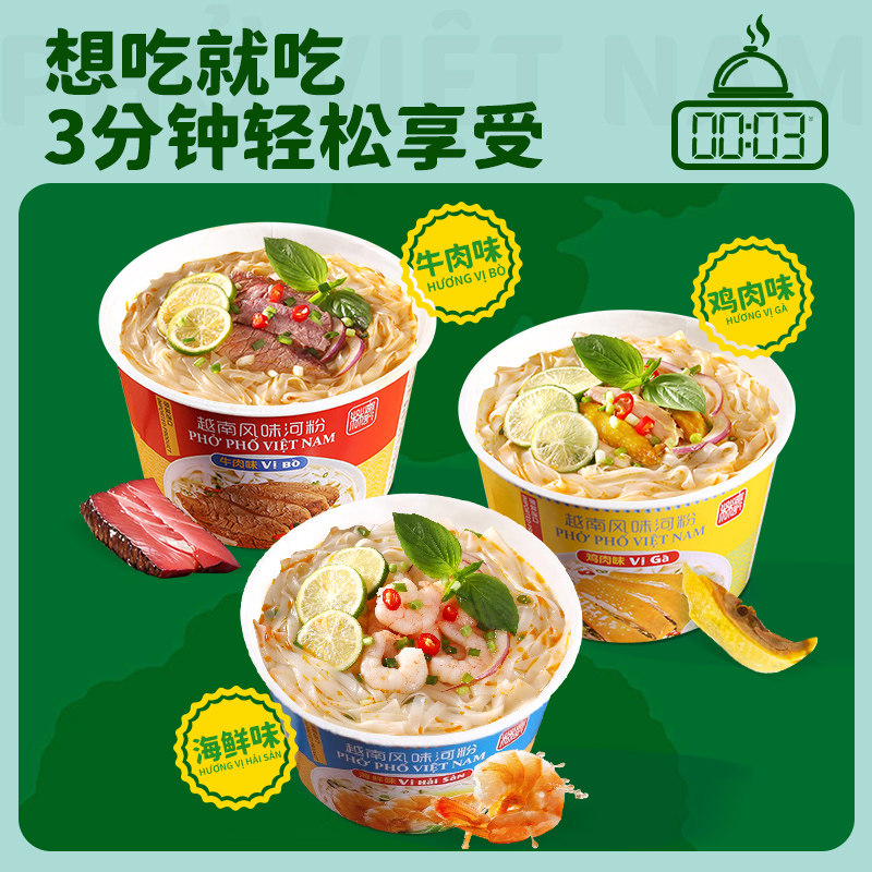 林富记越南pho河粉进口速食牛肉海鲜方便面即食桶装泡面米粉夜宵