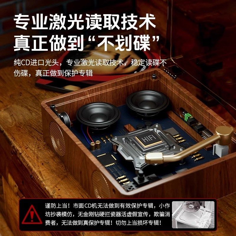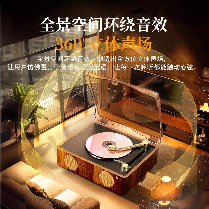 复古cd机便捷式带蓝牙播放器专辑光碟通用一体黑胶唱片机生日礼物
