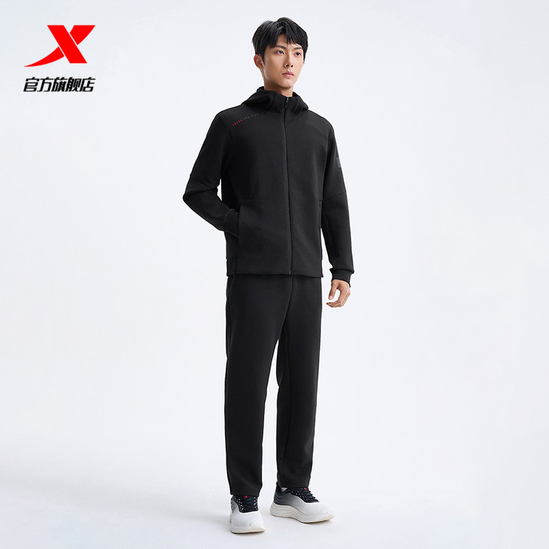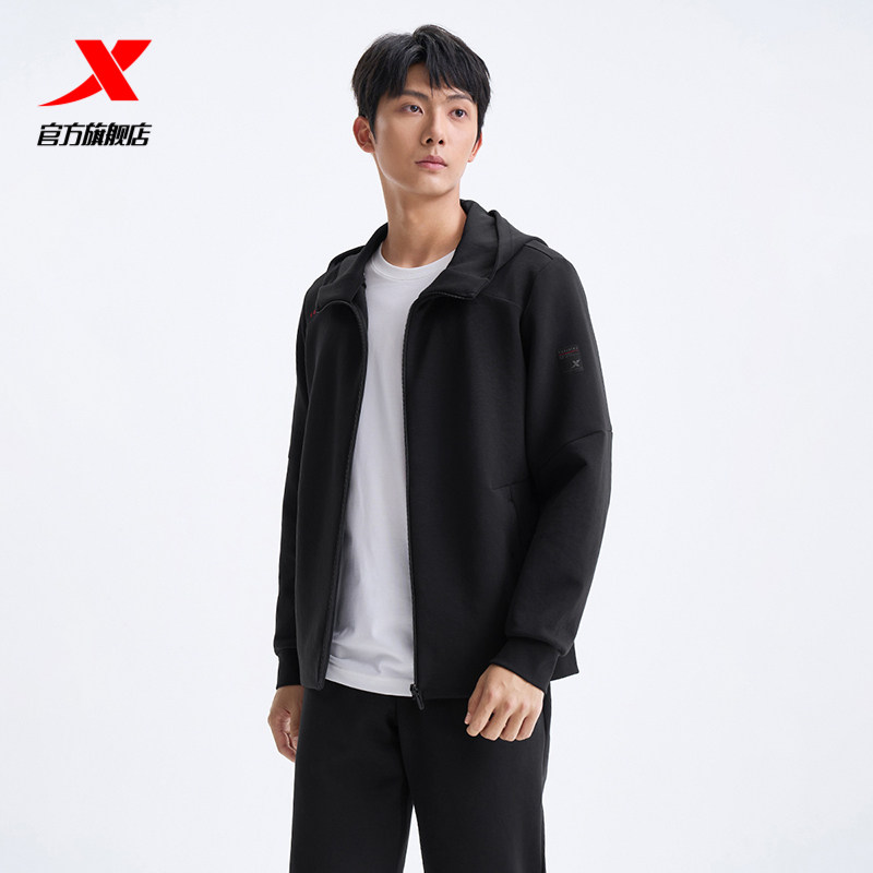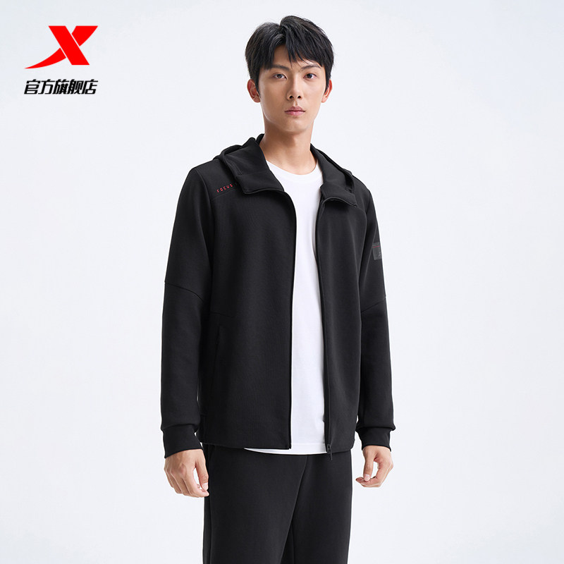 特步连帽外套男2025年秋冬新款运动上衣训练健身夹克975329940111