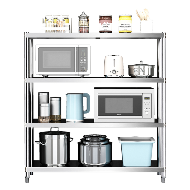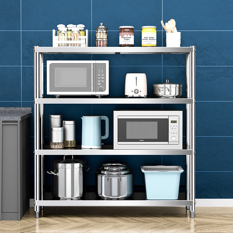 4层厨房置物架不锈钢收纳微波x炉烤箱四层锅架落地式多层储物架子