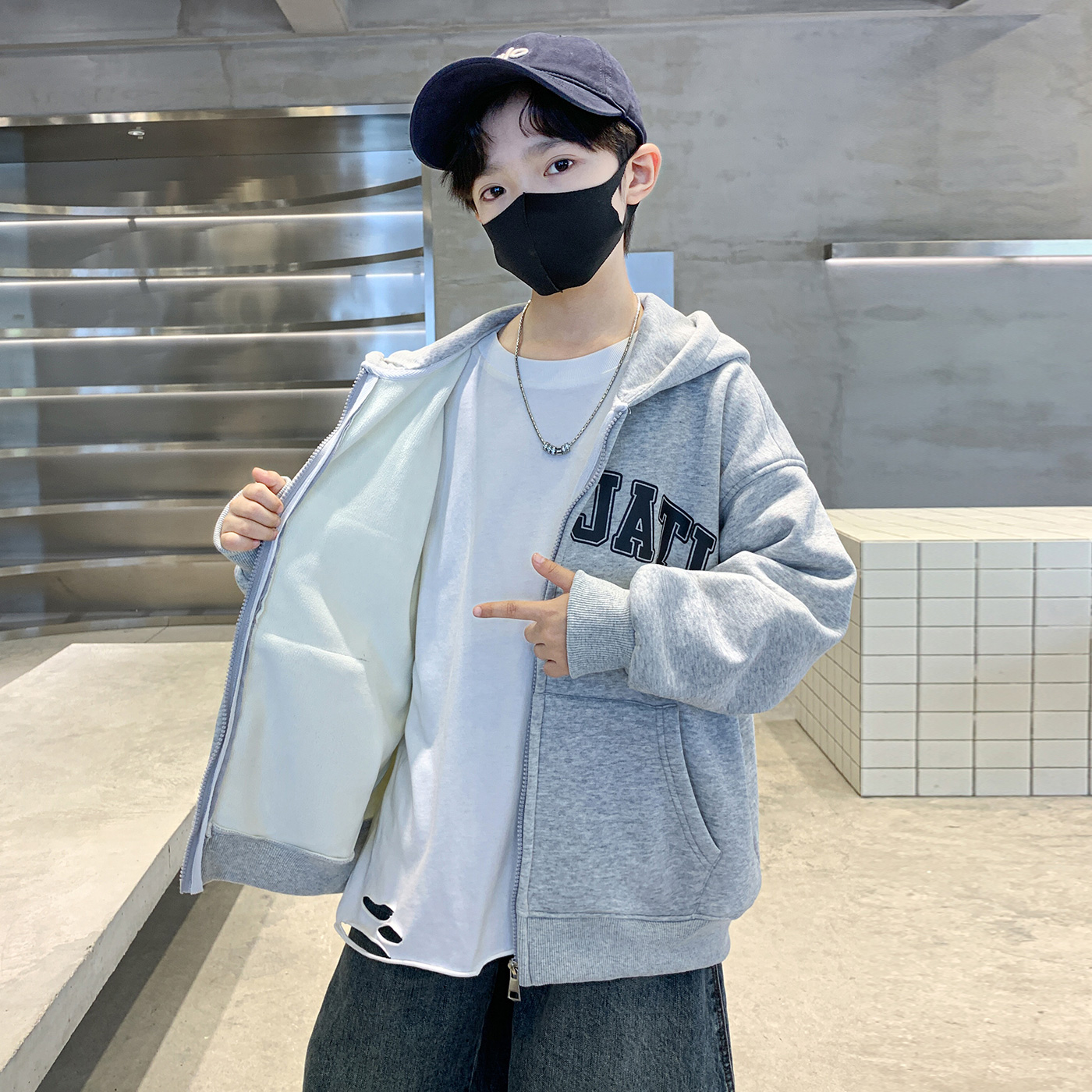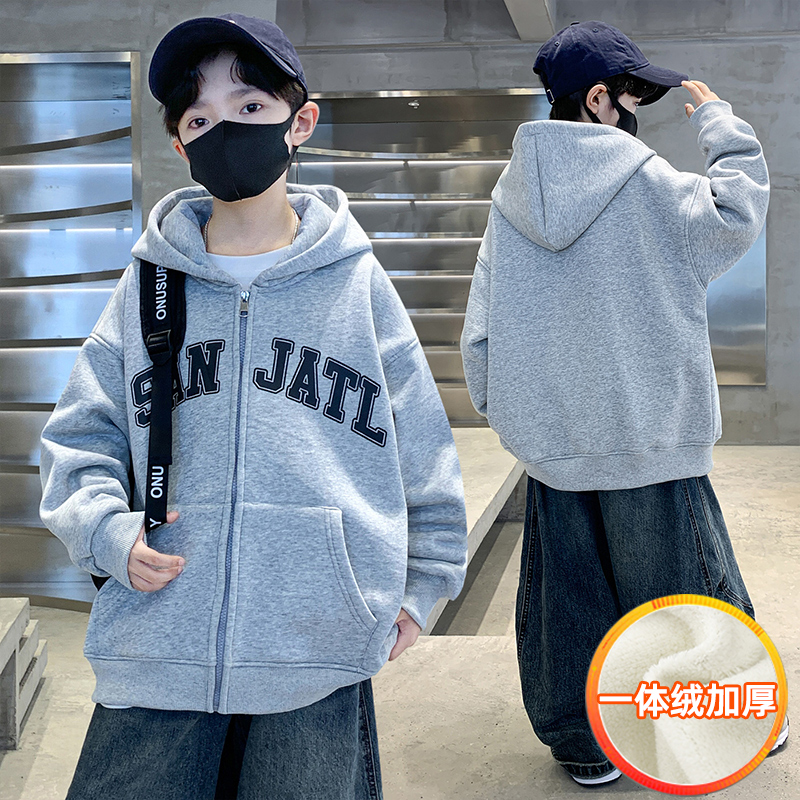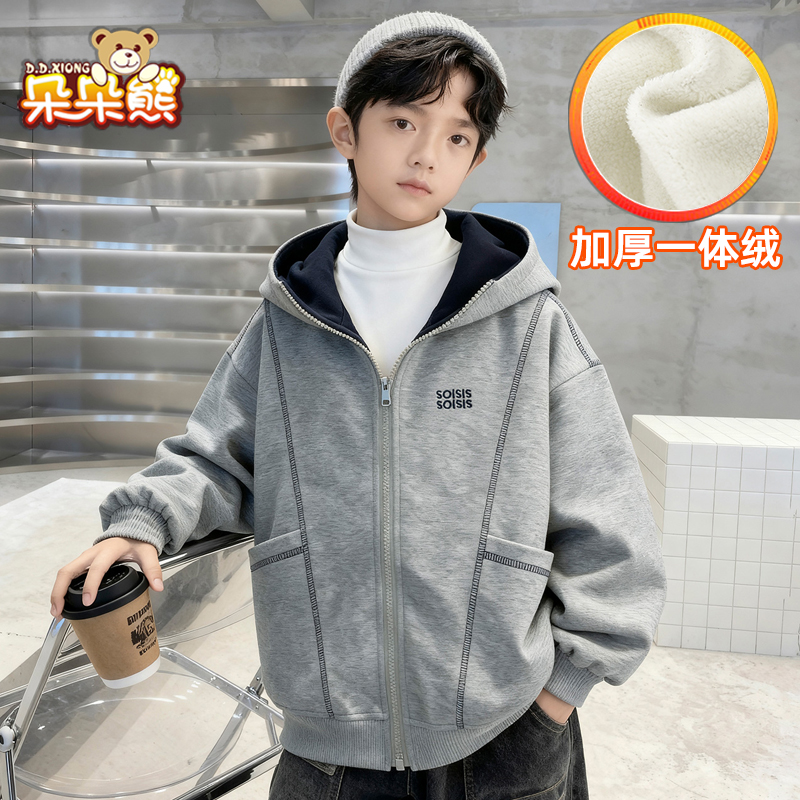 男童外套加绒加厚一体绒秋冬款新款 儿童中大童上衣运动服2025男