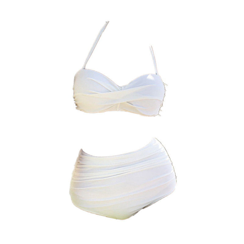 韩国新款ins白色性感分体三角高腰比基尼遮肚钢托小胸聚拢泳衣女