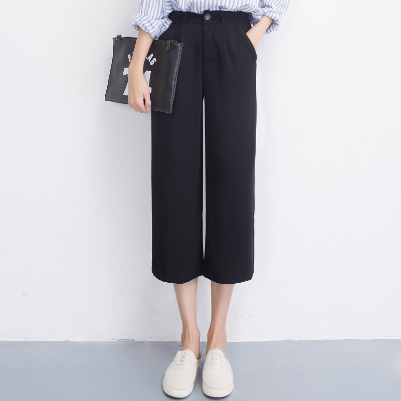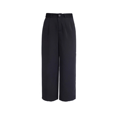 150小个子阔腿裤女145cm春夏显高穿搭八分高腰宽松直筒垂感西装裤