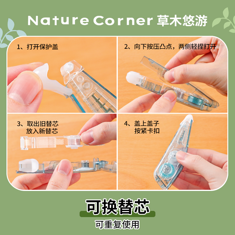 日本KOKUYO国誉Nature Corner草木悠游笔型点点胶点状高粘度双面胶强力胶粘可换芯可擦除儿童手工手帐胶带