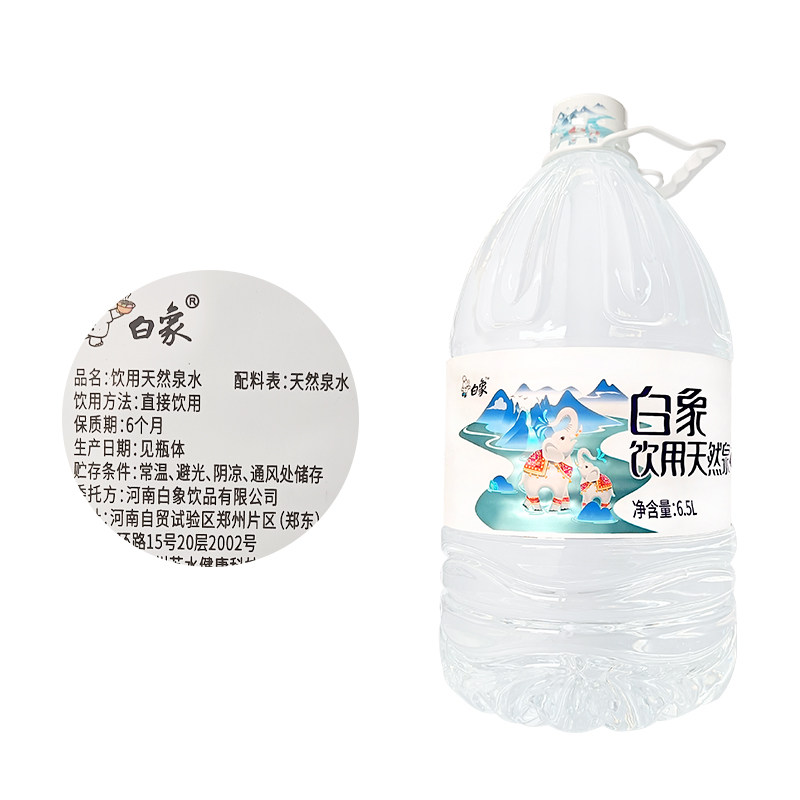 白象天然泉水6.5L*4桶整箱特价家庭办公大瓶桶装泡茶饮用非矿泉水