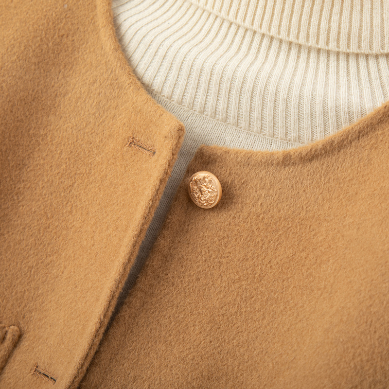 秋冬新款双面羊绒大衣女短款圆领气质宽松大码小个子羊毛呢子外套