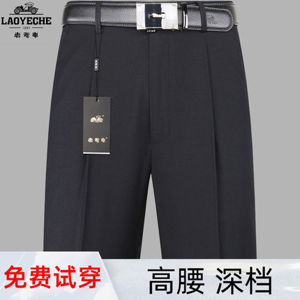 老爷车厚款中老年免烫秋冬长裤高腰宽松直筒商务男裤正装垂感西裤