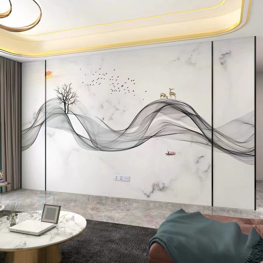 烟雾线条墙纸新中式电视背景墙壁纸抽象山水壁布沙发客厅墙布壁画