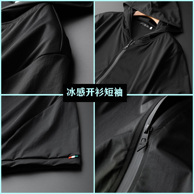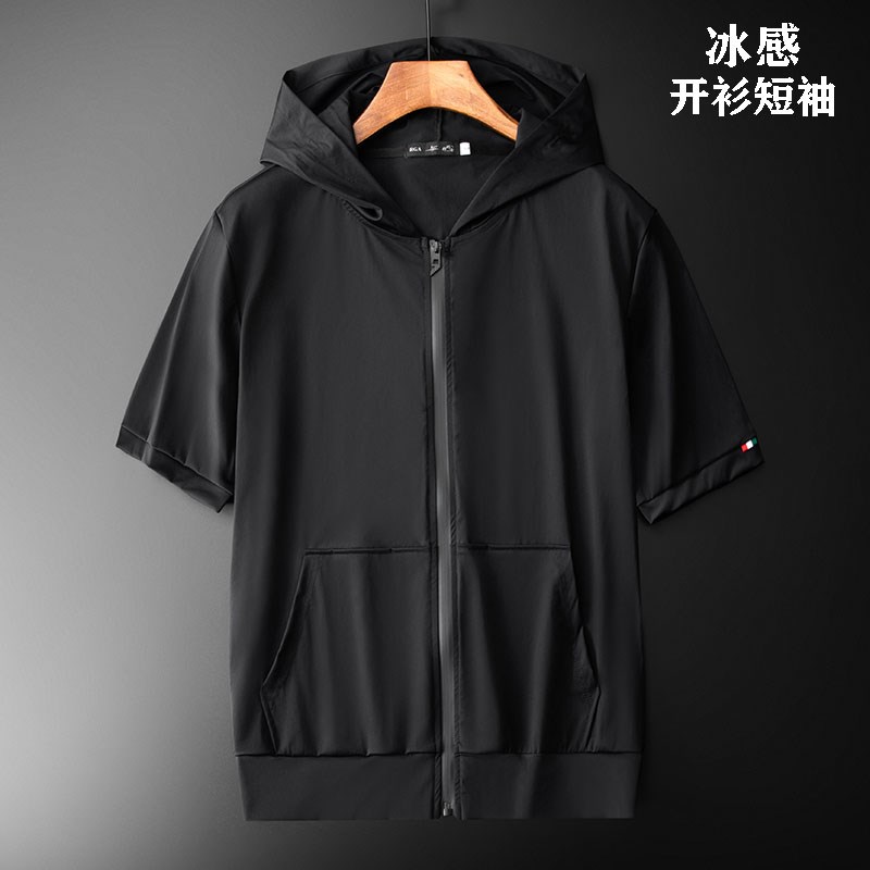 夏装短袖开衫卫衣男连帽拉链潮牌大码半袖男t恤冰丝帽服加肥加大