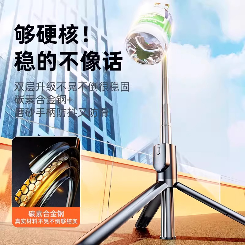 迷你自拍杆旅游便携手持2026新款手机通用落地三脚架拍照神器360度旋转直播支架多功能稳定器蓝牙拍摄防抖