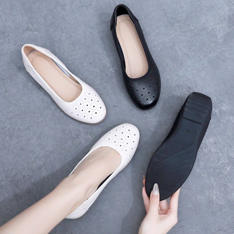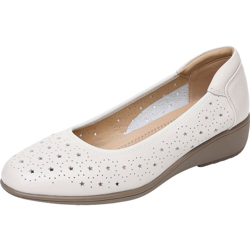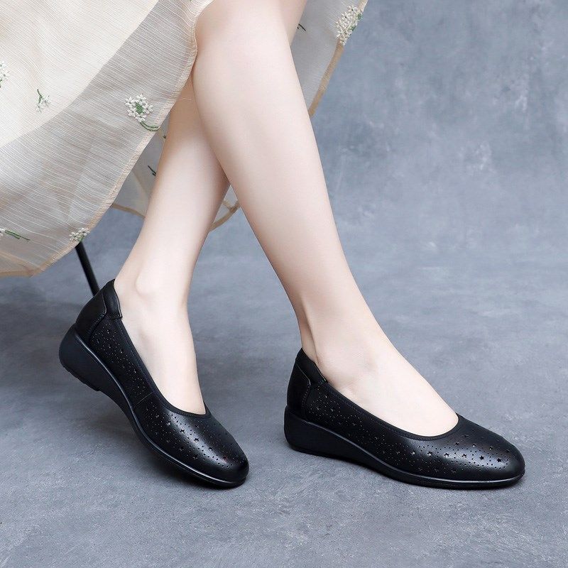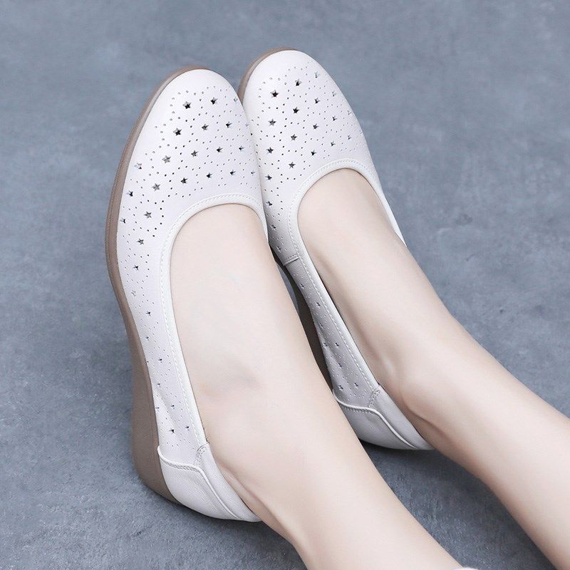 真皮镂空妈妈鞋夏季舒适单鞋女中老年小坡跟平底大码凉鞋洞洞皮鞋