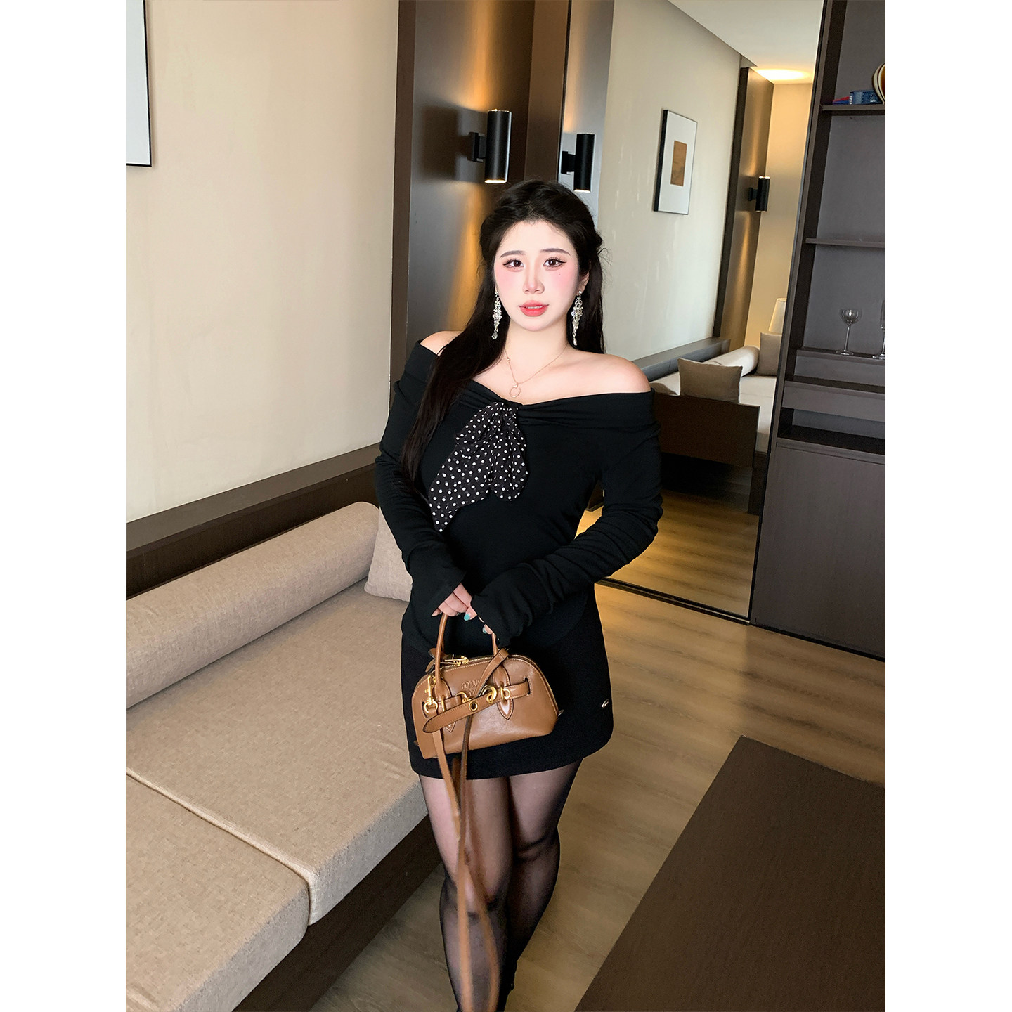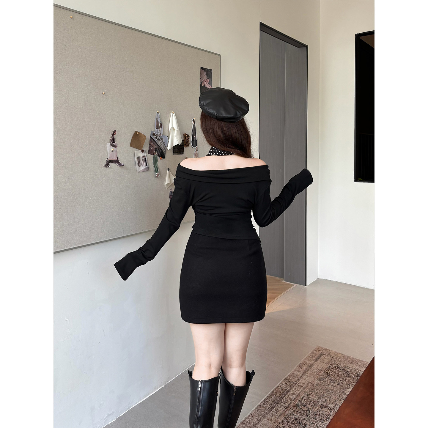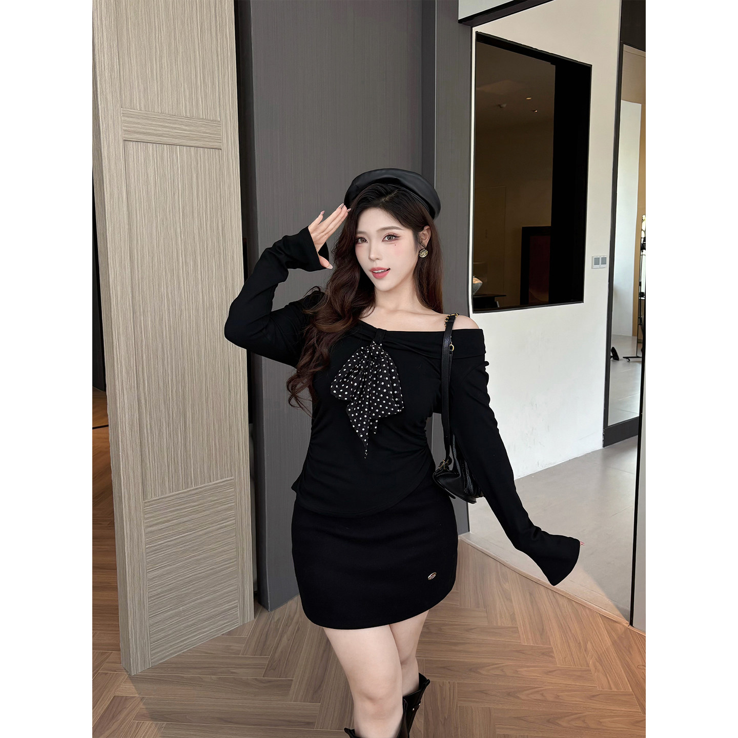 Babes【百搭冷调】大码百搭高腰显瘦毛呢厚款带安全裤包臀半身裙