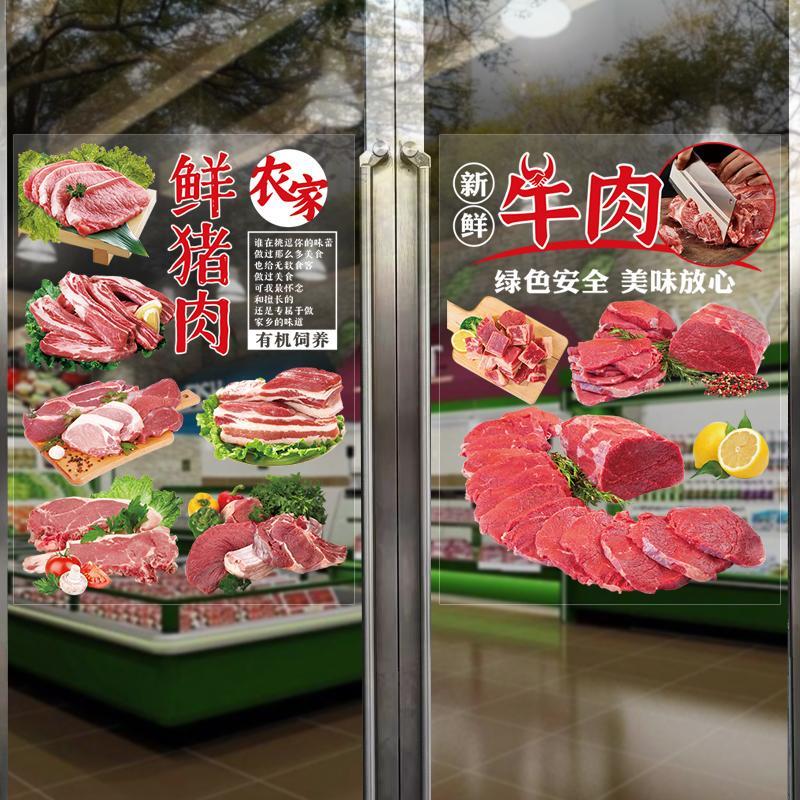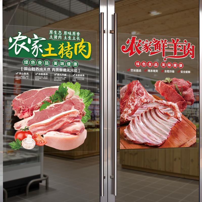 新鲜猪肉店铺玻璃橱窗门贴纸土猪肉羊肉牛肉广告宣传装饰海报贴画