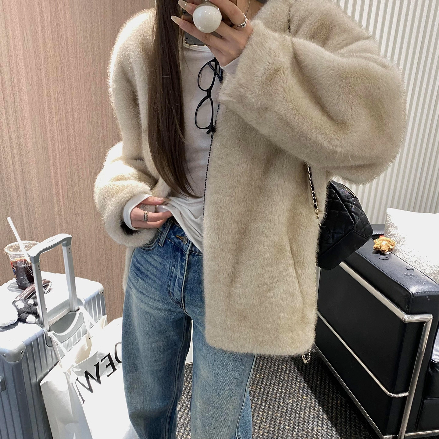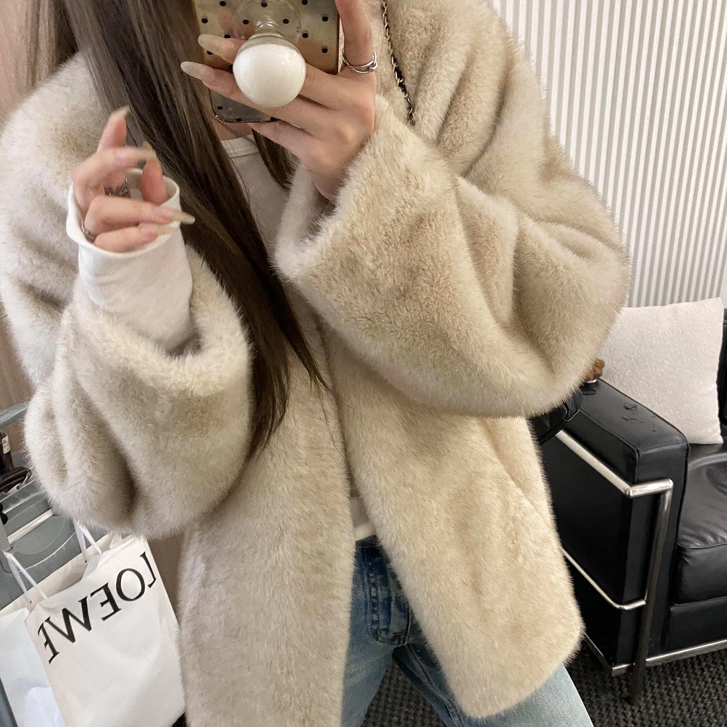 2025秋冬新款皮毛一体高级感V领毛毛外套女仿水貂毛绒皮草中长款